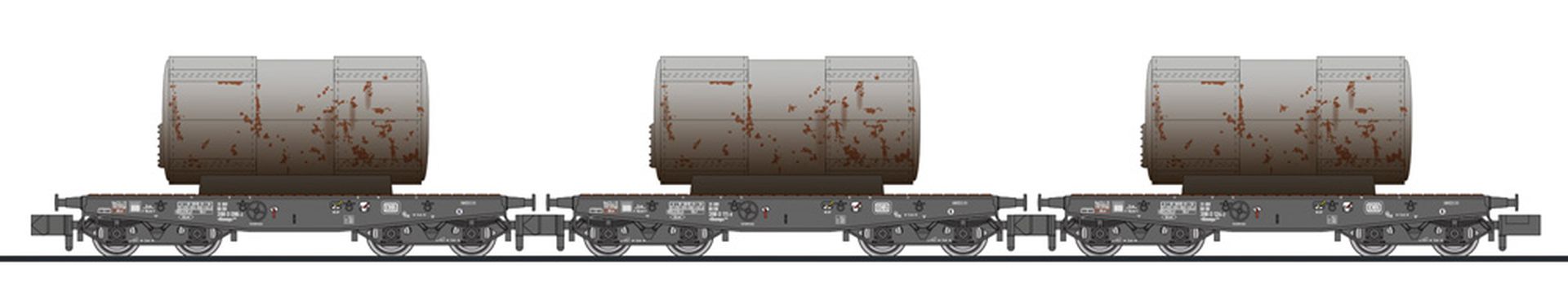 3-tlg. Set, 4-achs. Schwerlastwagen, Rlmmp 650, DB, Beladung Kessel, Ep.IV