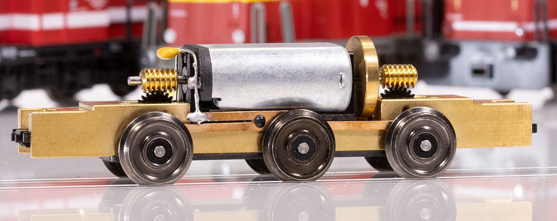 Des Weiteren ist PMT Modellbahn Spezialist im Bereich Antrieb und Fahrwerk mit verschiedenen Achsständen. Die PMT Modelle überzeugen durch ihre exzellente Qualität. Das Angebot reicht von kompletten Antrieben, welche hervorragende Fahreigenschaften aufweisen, bis hin zu diversen Achsständen für den Umbau älterer Fahrzeuge. Bekannte PMT Modelle sind auch die Umbausätze für die Stainz von LGB.