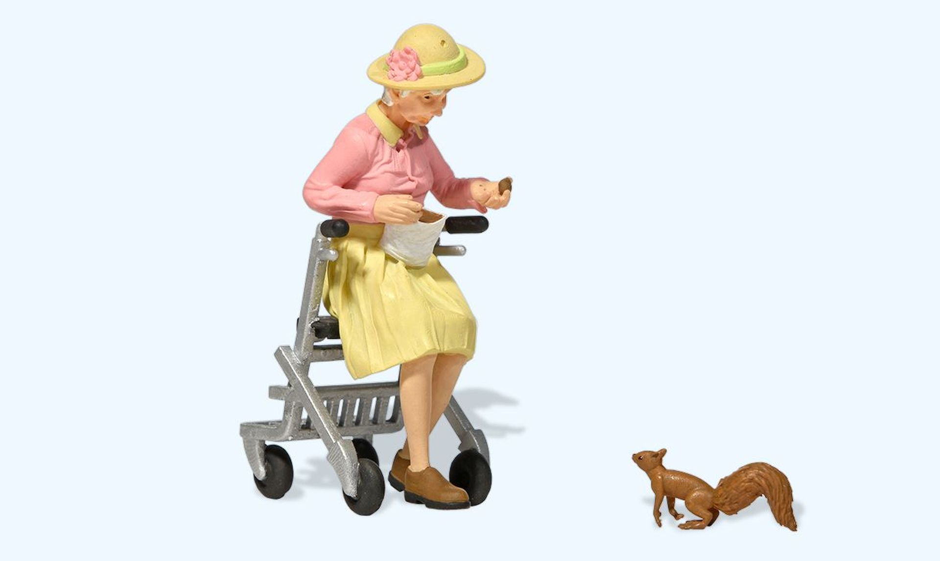 Preiser 44945 - Alte Dame mit Rollator, Eichhörnchen fütternd