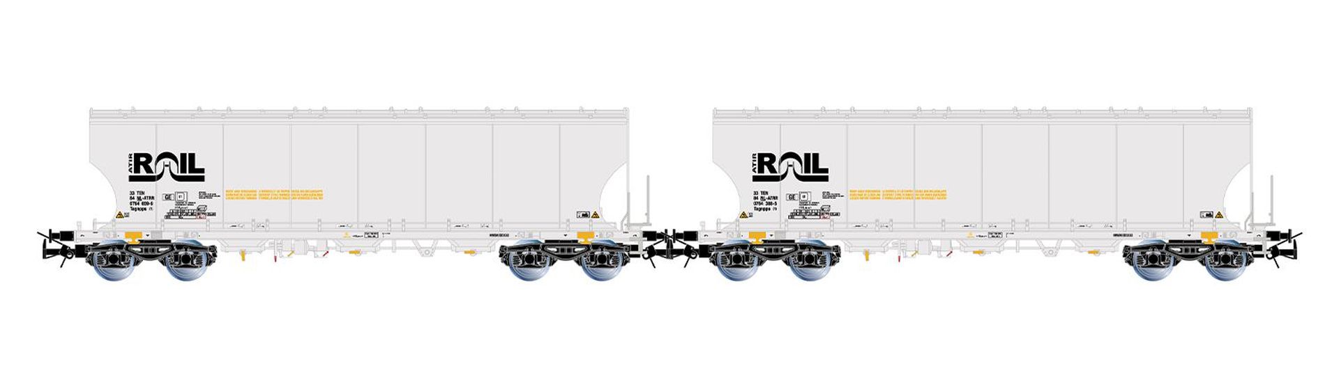 ATIR-RAIL, 2-tlg. Set 4-achs. Getreidesilowagen, graue Farbgebung, Ep. VI