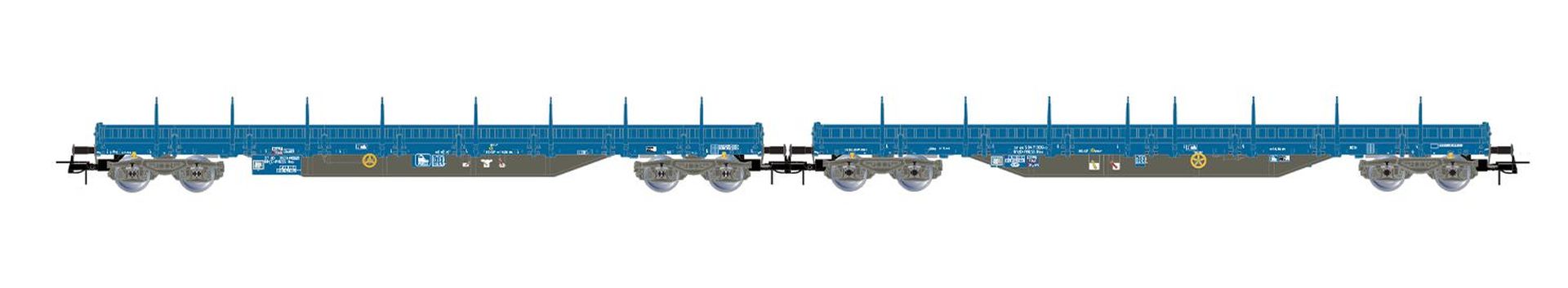 Press, 2-tlg. Set 4-achs. Rungenwagen, Typ Res, blaue Farbgebung (leer), Ep. VI