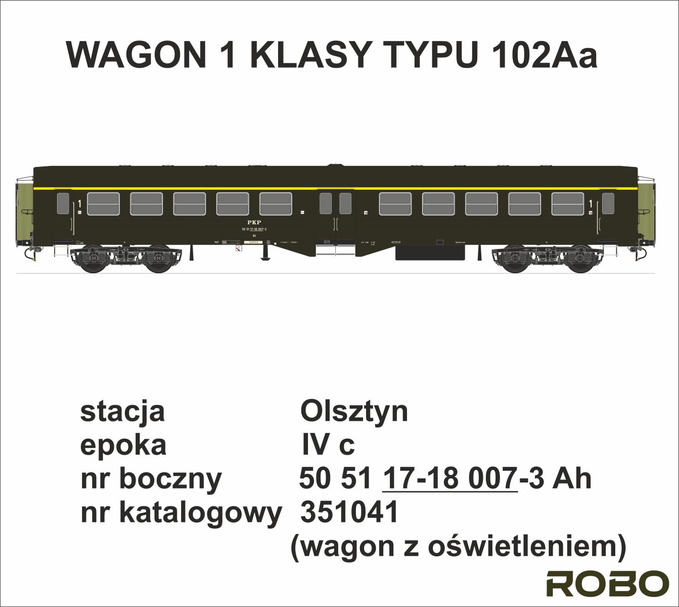 Robo 351040 - Personenwagen 102Aa 'Ryflak', 1. Klasse, Olsztyn Glowny, PKP, Ep.IV