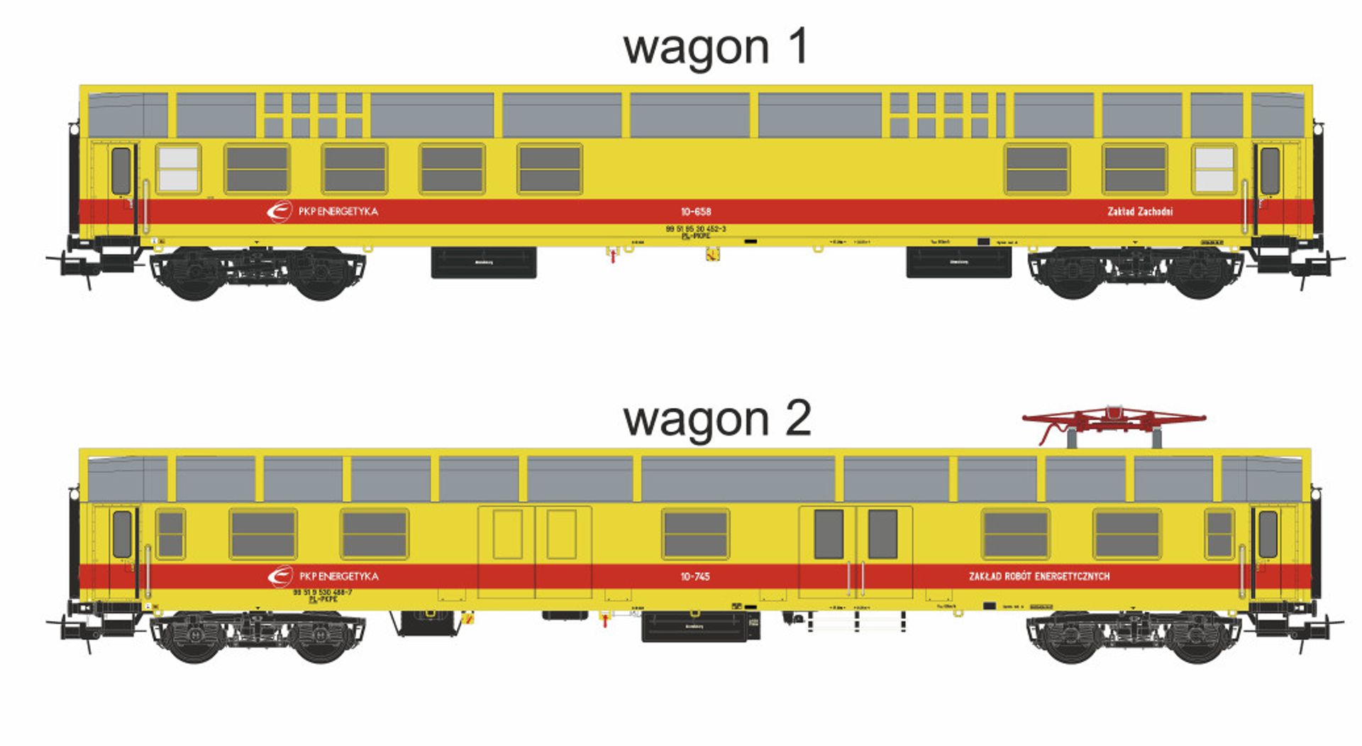 Set mit 2 technischen Wagen in PKP Energetyka-Lackierung mit den Nummern: