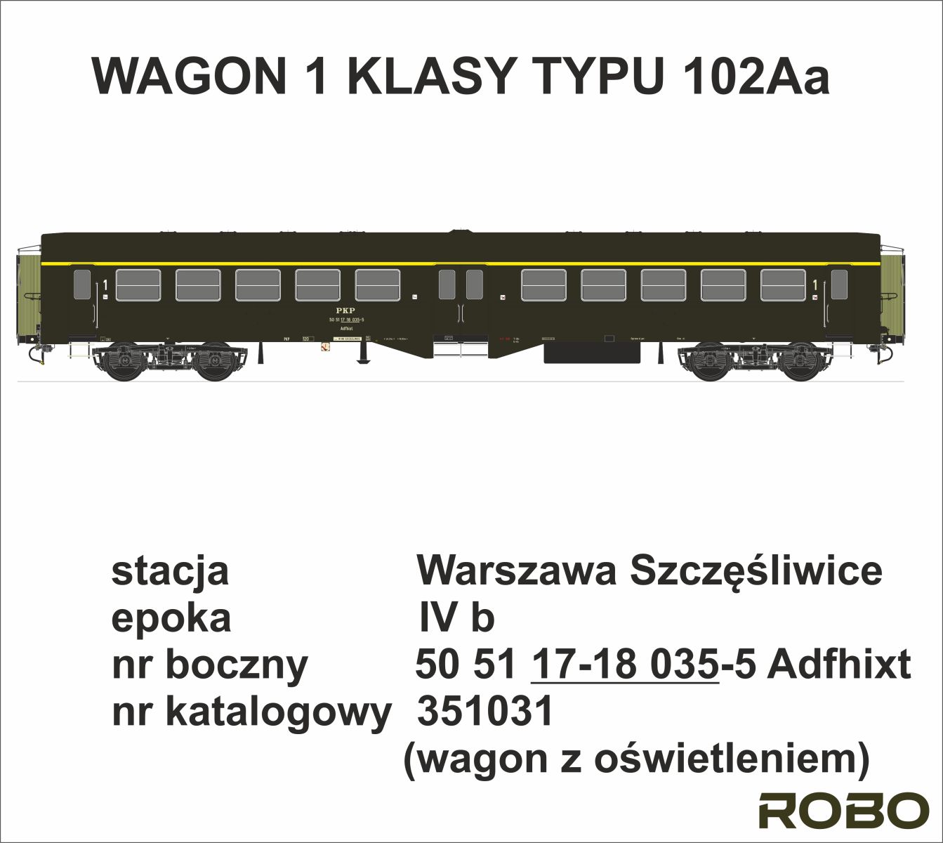Robo 351030 - Personenwagen 102Aa 'Ryflak', 1. Klasse, Szczesliwice, PKP, Ep.IV