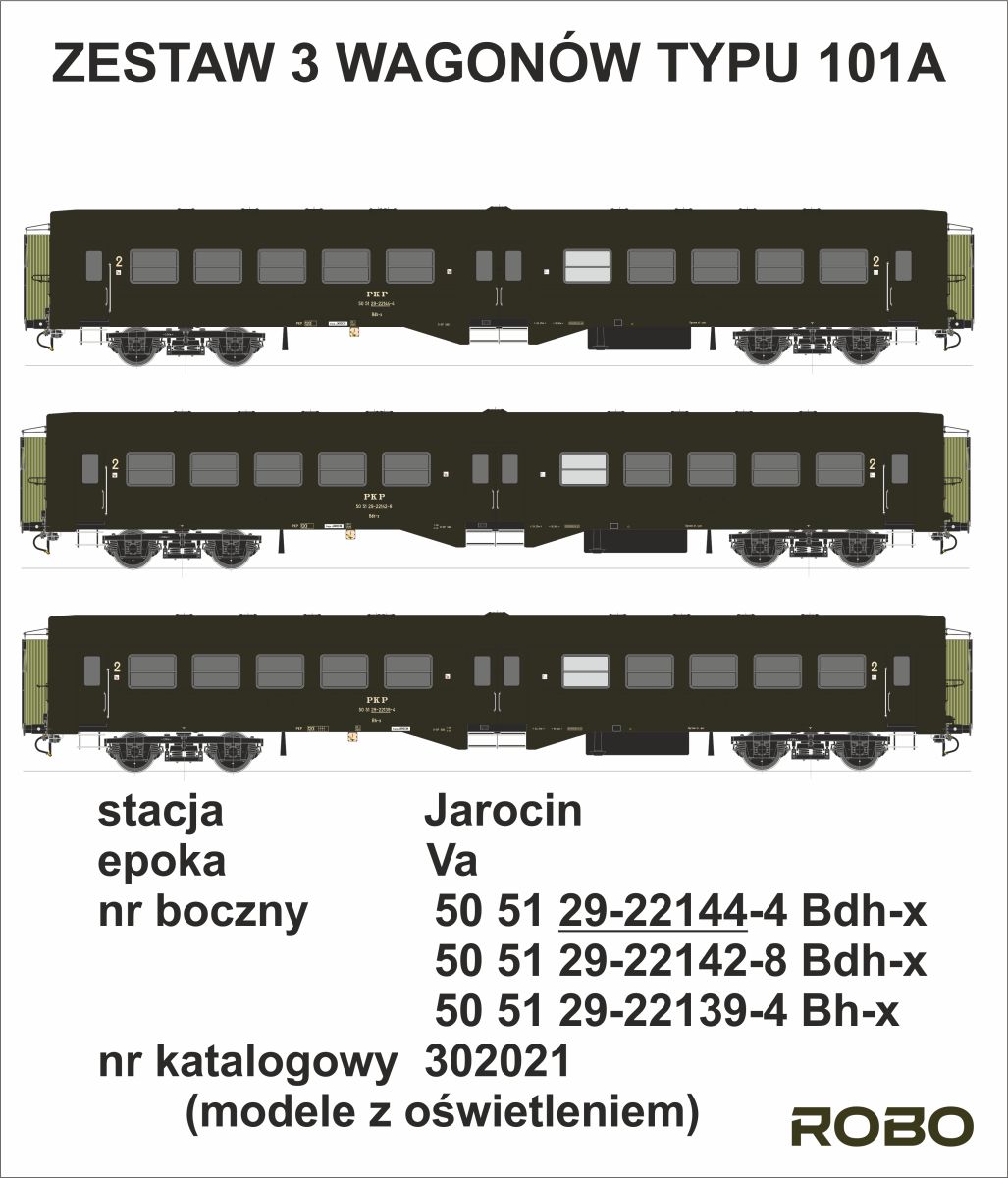 Robo 302021 - 3er Set Personenwagen 101A 'Ryflak', 2. Klasse, Jarocin, PKP, Ep.V, mit Innenbeleuchtung