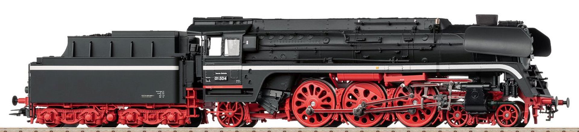 Vorbild: Schnellzug-Dampflokomotive Baureihe 01.5, mit Kohlen-Schlepptender 2´2´T34. Reko-Ausführung der Deutschen Reichsbahn der DDR (DR/DDR). Schwarze Grundfarbgebung mit weißen Zierstreifen und rotem Fahrwerk. Mit Boxpok-Räder, Witte-Windleitblechen in spezieller Bauform für die BR 01.5, durchgehender Domverkleidung und…