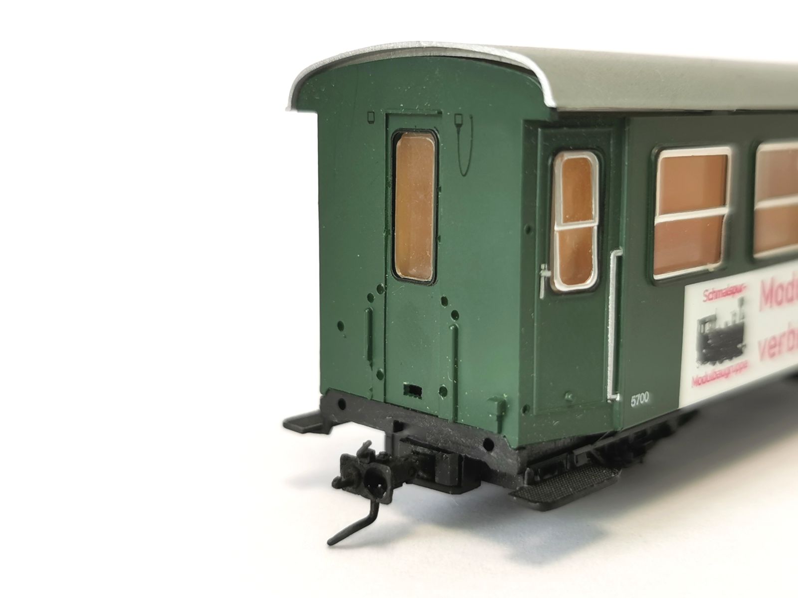 Ab 1906 beschaffte die sächsische Staatsbahn 5,50 Meter lange Rollwagen zum Transport für Normalspurwagen. Von den mit typischen Kastendrehgestellen ausgerüsteten Fahrzeugen wurden über 500 Stück gebaut. Der Rollwagen wird mit leicht funktionsfähigen Trichterkupplung geliefert.