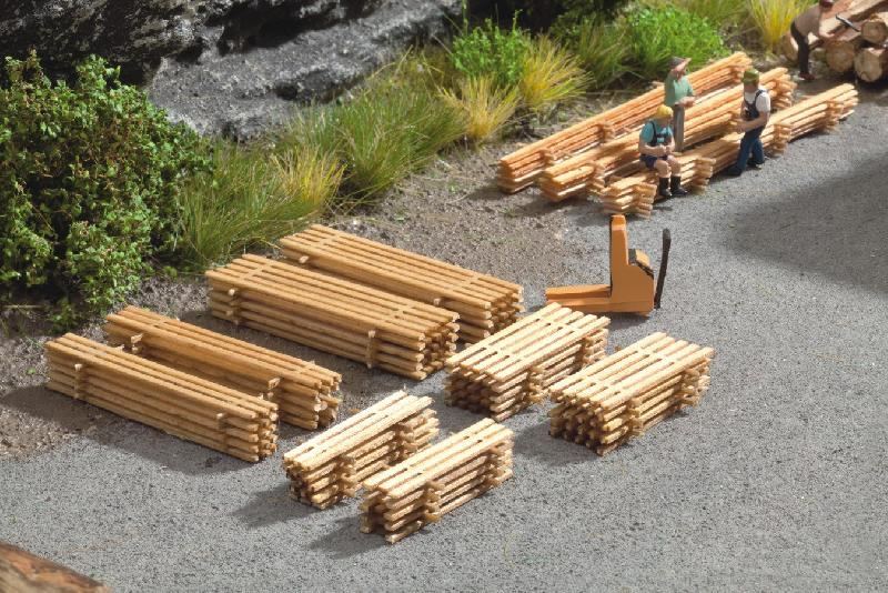 8 Stapel mit Holzbrettern, je 2 Stapel 2,5 x 0,8 cm, 2,5 x 1,3 cm, 4 x 0,8 cm, 4 x 1,3 cm - Realistische Details! Die Laser-Cut minis von NOCH sind mittlerweile eine "kleine Institution". Mit den Bausätzen können Sie Modell-Szenen realistisch ausgestalten. Die kleinen Bausätze finden sicherlich auf jeder Anlage noch einen Platz. Lassen Sie sich einfach von unserer großen Themenvielfalt inspirieren! Die "Bretterstapel" sorgen für noch mehr Details auf Baustellen und vielen weiteren Szenen und verleihen Ihrer Anlage ein naturgetreues Aussehen.