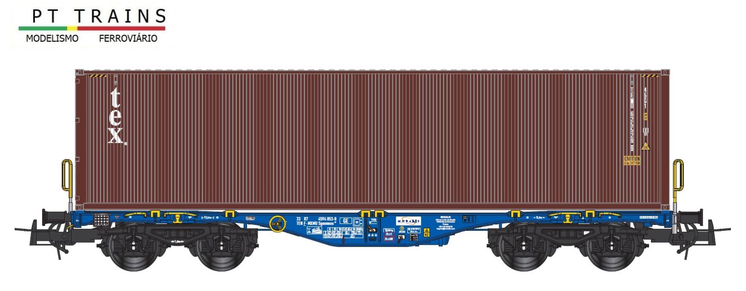 PT-Trains 100260 - Containertragwagen Sgmmnss mit Container 'tex', Modalis, Ep.VI