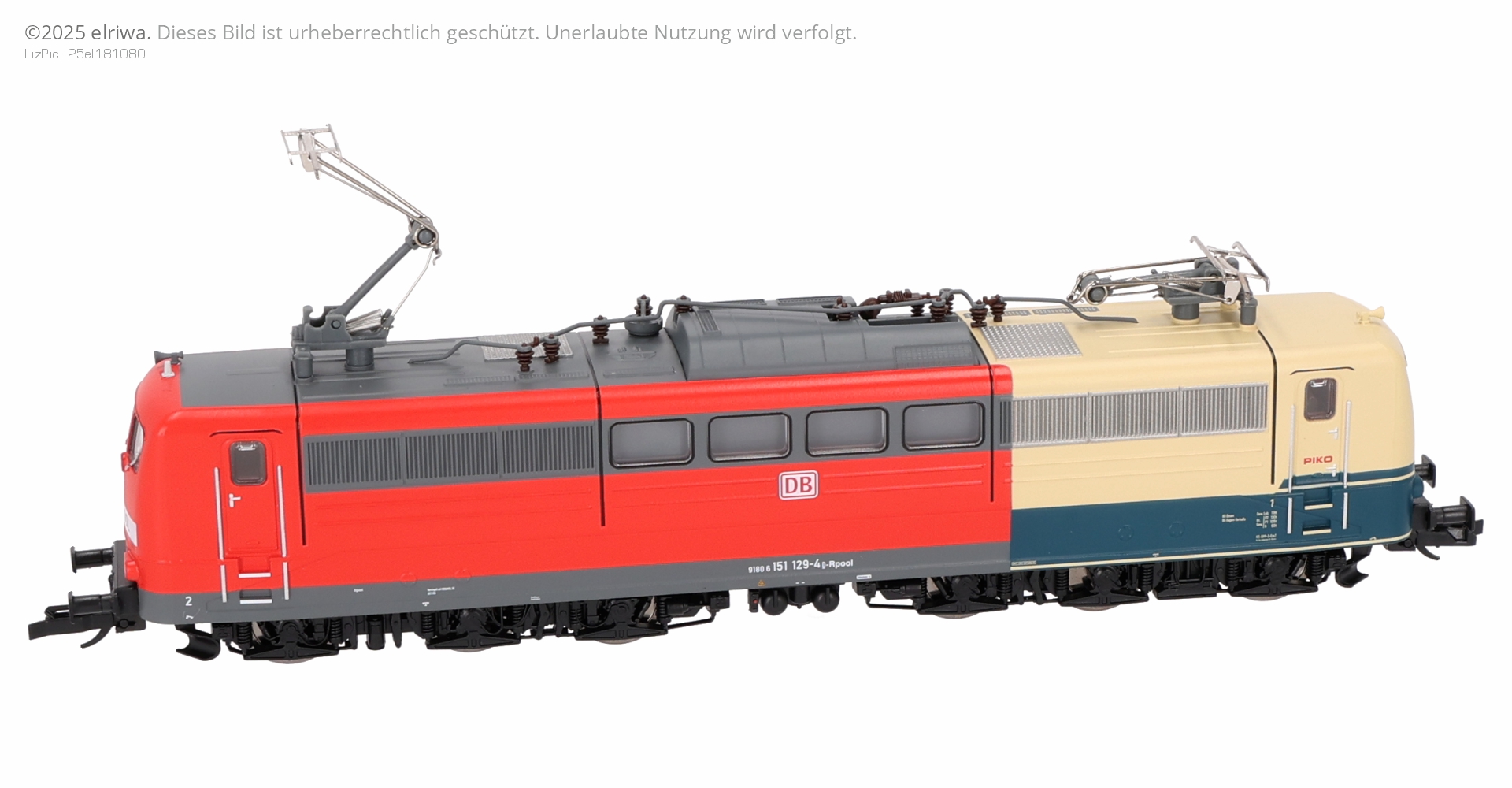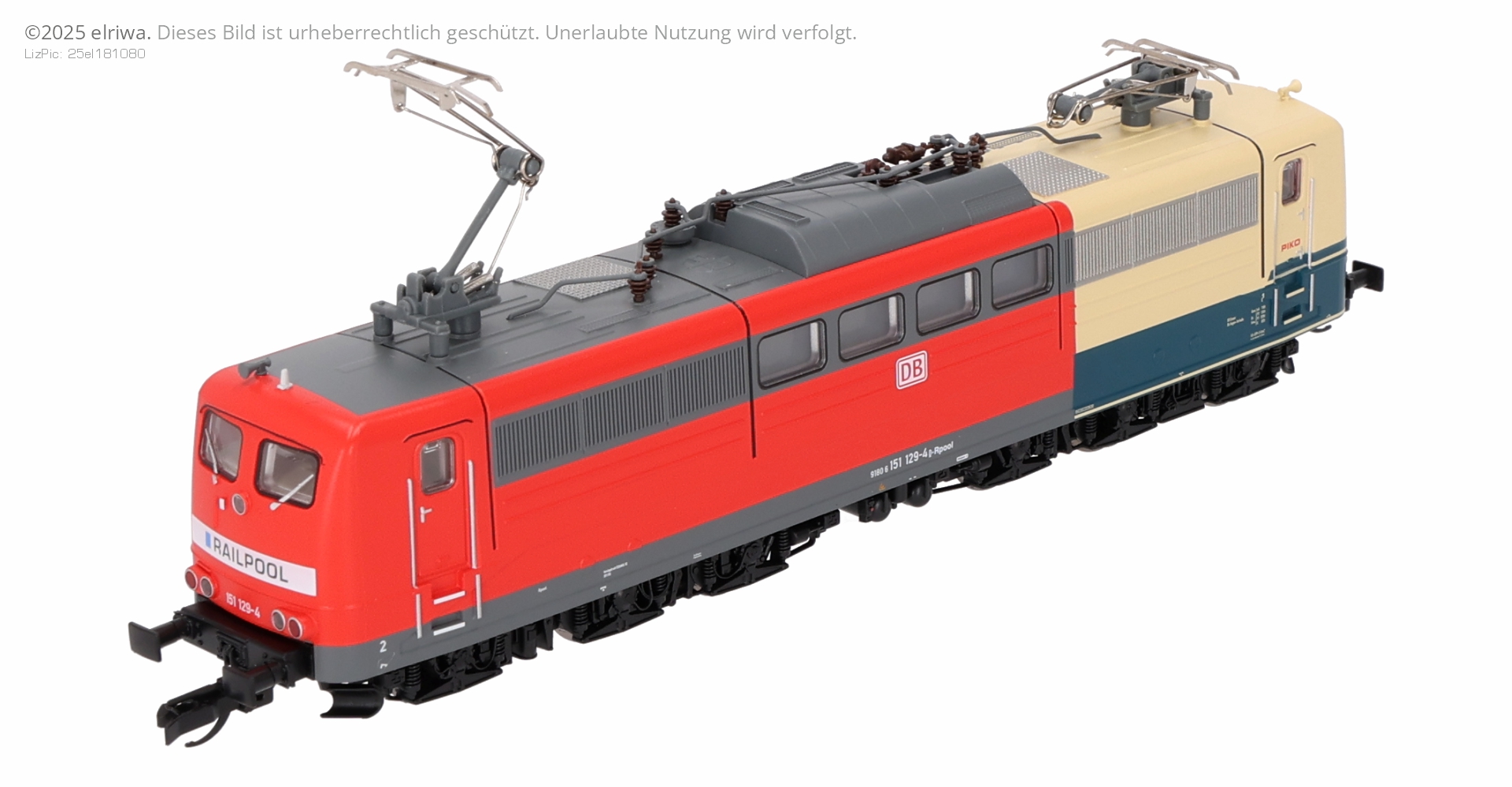 Nach über 50 Jahren endete am 26.06.2024 eine Ära der deutschen Lokomotivgeschichte: Die ab 1972 an die Deutsche Bundesbahn gelieferte Baureihe 151 schied aus dem aktiven Dienst aus. Um dieser Reihe, die sie so lange begleitet hatte, ein Andenken zu setzen, stellten Eisenbahner aus dem Ruhrgebiet ehrenamtlich ein einzigartiges Projekt auf die Beine. In Zusammenarbeit mit DB Cargo AG, Railpool und PIKO entstand die Idee einer Abschiedslok, die der BR 151 mit einer ungewöhnlichen Neulackierung der 151 129 eine angemessene Verabschiedung bieten konnte. Eine dreigeteilte Farbgebung spiegelt wie auf einer Zeitreise die Lebensabschnitte dieser Lok wider. Ein Drittel der Maschine erhielt die ozeanblaue und beige Färbung der Ursprungslackierung bei der Deutschen Bundesbahn - inklusive PIKO Logo auf den Türen. Der Mittelteil erstrahlt im Verkehrsrot der Deutschen Bahn AG und der letzte Abschnitt erhielt neben dem verkehrsroten Anstrich einen für die Baureihe 151 seltenen Railpool- Balken. In diesem epochenübergreifenden Design führte ihre Abschiedstour im September 2024 die 151 129 von Hagen nach Maschen, Mannheim, Seddin, Bremerhaven und Seelze.