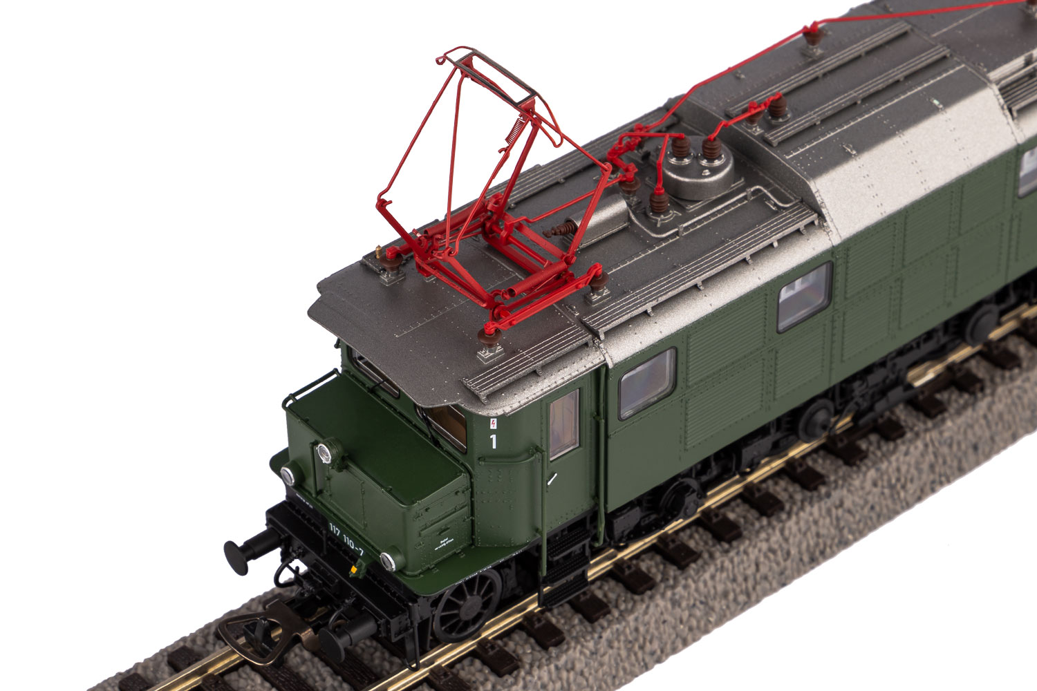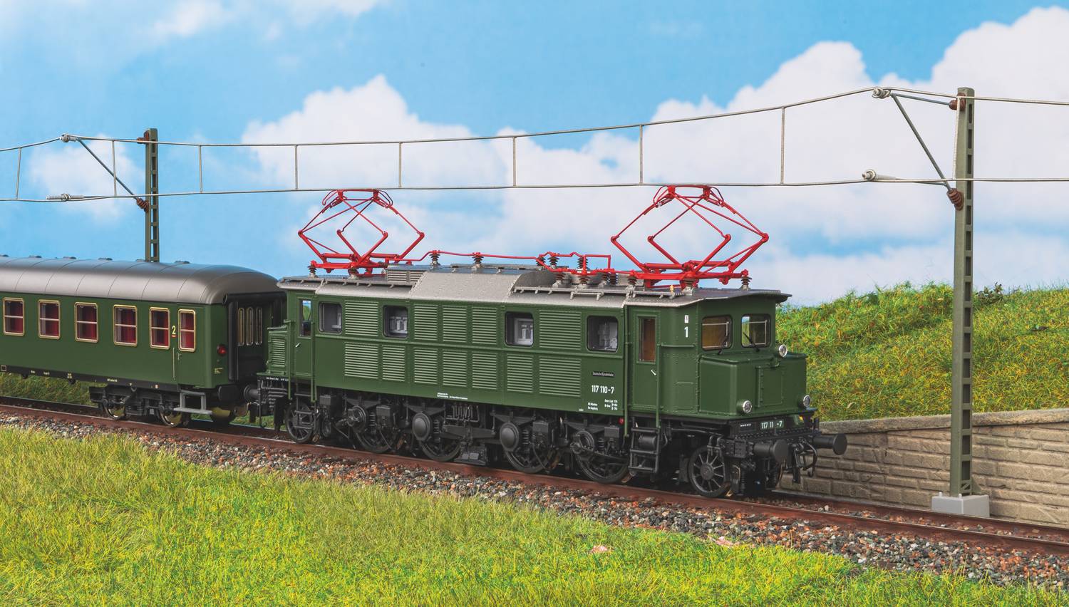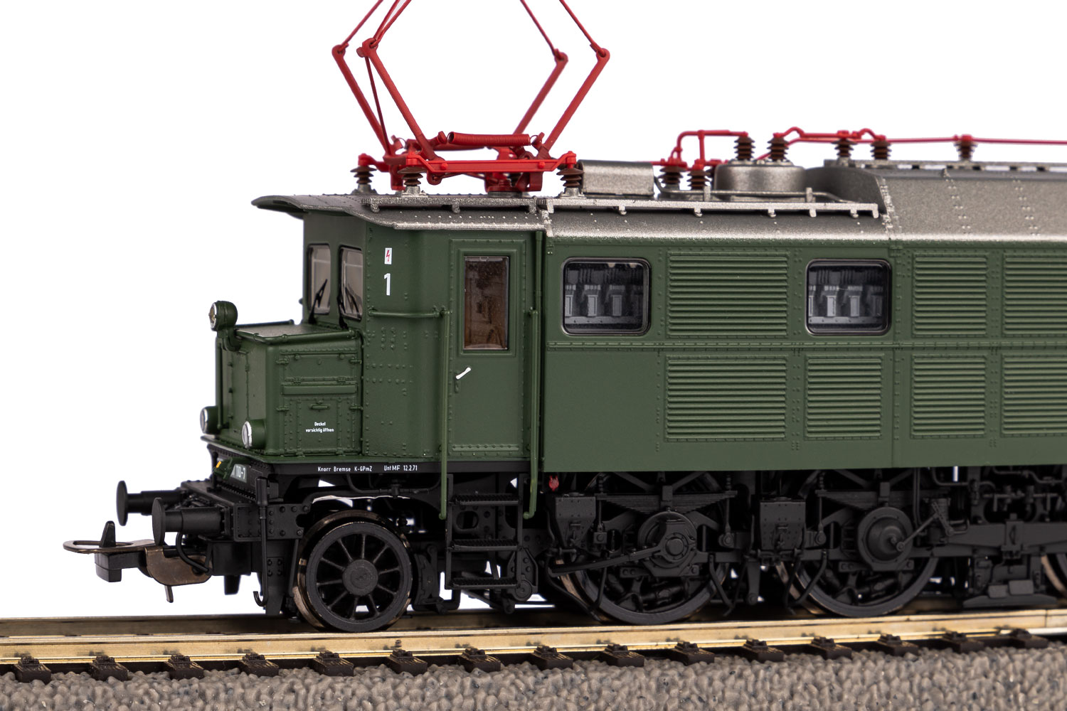 Mit der Neukonstruktion der Baureihe E 17 setzt PIKO konsequent die Serie der bekannten Altbau-Elektrolokomotiven fort. Das Modell gibt die markanten Formen des Vorbildes maßstabsgerecht wieder. Zur perfekten Wiedergabe des Betriebszustandes in Epoche IV wurden alle im Zuge der Modernisierung entstandenen Änderungen am Vorbild auch beim Modell berücksichtigt. Diese betrafen neben den Frontfenstern auch den Dachleitungsverlauf und die Vorbaugestaltung. Technisch ist das neue PIKO-Modell am Puls der Zeit und verfügt über seidenweiche Fahreigenschaften, gute Zugkraft und serienmäßig eingebauten Lichtwechsel. Dieser ist wie die Beleuchtungen in Führerstand und Maschinenraum in modernster LED-Technik ausgeführt. Die Soundversion ist ab Werk mit einem passenden PIKO Sound-Decoder inkl. größtmöglichem Lautsprecher ausgestattet.