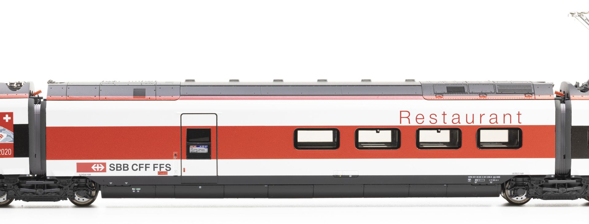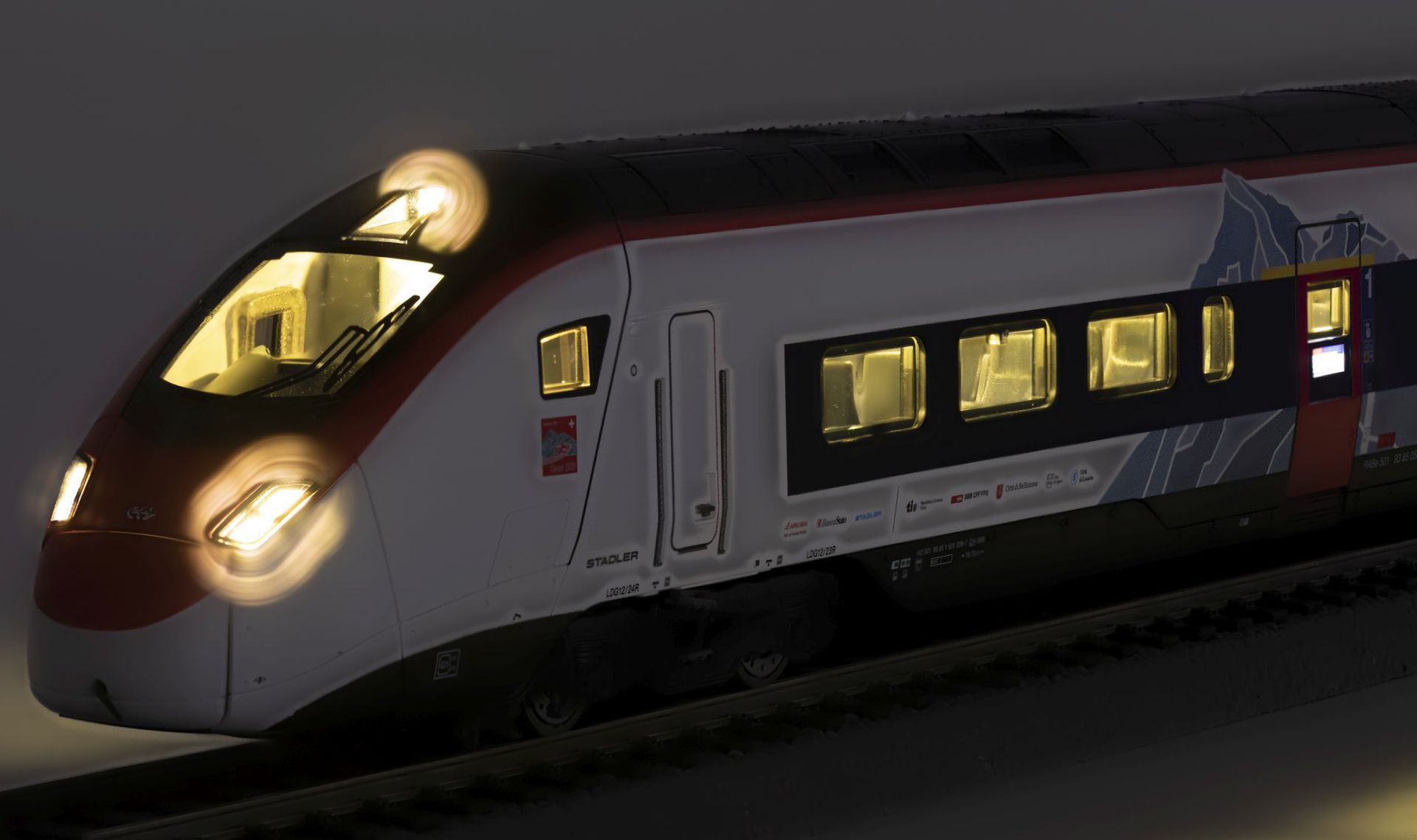 In der Digitalausführung verfügt der Zug über busgesteuerte, dimmbare Innenbeleuchtung, beleuchtete Zugzielanzeigen und den neuen PIKO XP 5.1-Decoder mit Plux22-Schnittstelle. Der adaptive Fahrregler bietet eine originalgetreue Sound-Fahr-Kopplung und lastabhängige Parametrisierung. Zwei Lautsprecher in den Wagen D und K sorgen für räumlichen Klang, die Endwagen besitzen eine prozessgesteuerte Lichtsteuerung mit 16 Lichtszenarien und zahlreichen Zusatzfunktionen wie Führerstandsbeleuchtung, Originalsounds und Bahnhofsansagen. Die fein detaillierte Dachlandschaft mit unterschiedlichen Stromabnehmern sowie die trennscharfe Bedruckung unterstreichen die hohe Fertigungsqualität.