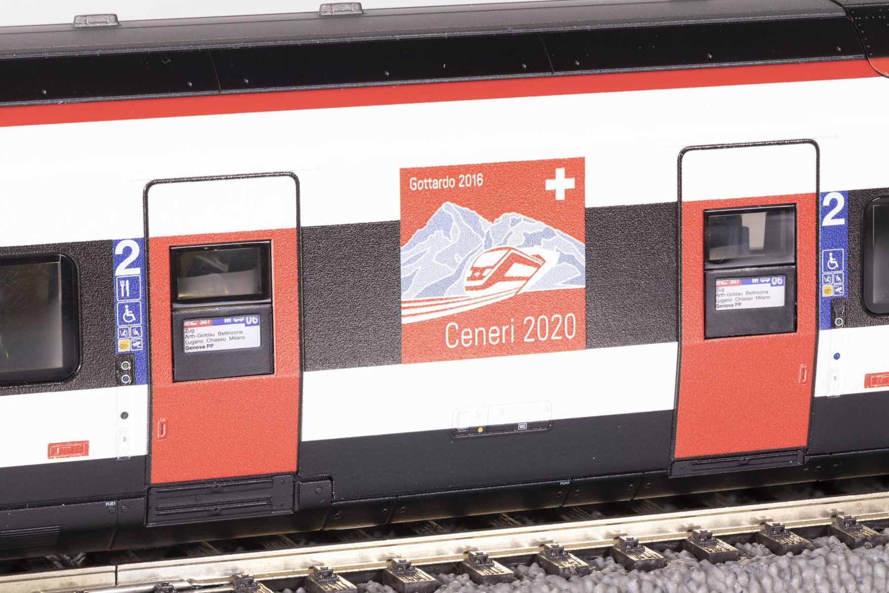 Der Triebzug RABe 501 008 „Ceneri 2020“ erhielt anlässlich der Eröffnung des Ceneri-Tunnels im Dezember 2019 eine Sonderbeklebung.