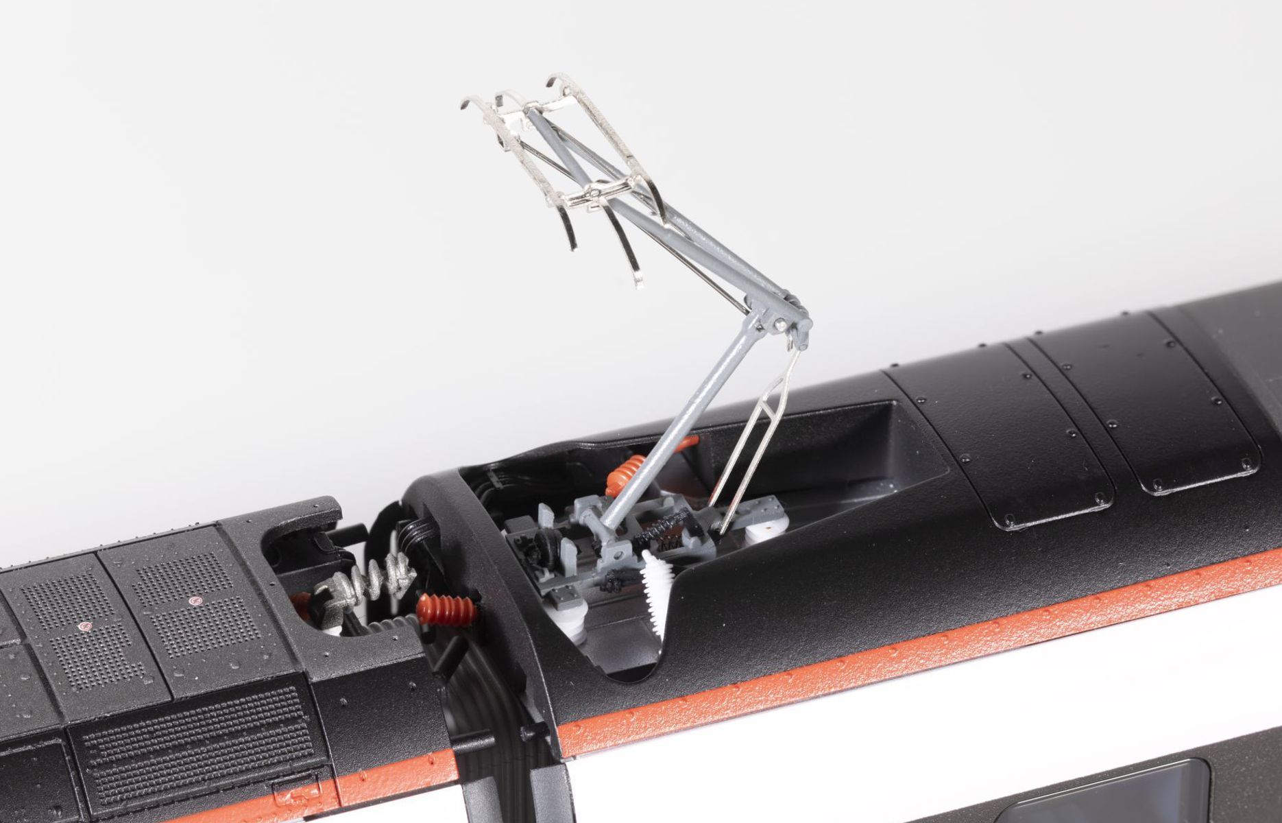 Das Modell besteht – wie das Vorbild – aus zwei Steuer- und neun Zwischenwagen, jeweils mit individueller, vorbildgerechter Inneneinrichtung. Antrieb über vier Achsen, starker 5-Pol-Motor mit zwei Schwungmassen und acht Haftreifen. Die Stromabnahme erfolgt über beide Steuerwagen, prozessorgesteuert und ohne bremsende Mechanik – so hält der Zug präzise vor Signalen. Mehrpolige, stromführende Kupplungen und Kurzkupplungskinematik sind serienmäßig vorhanden; Frontkappen sind abnehmbar, verschiedene Kupplungstypen liegen bei.