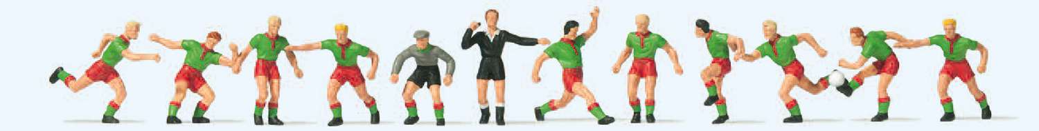 Preiser 10757 - Fussballmanschaft, grüne Trikots und rote Hosen