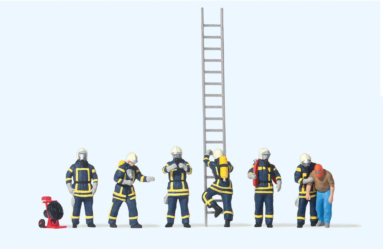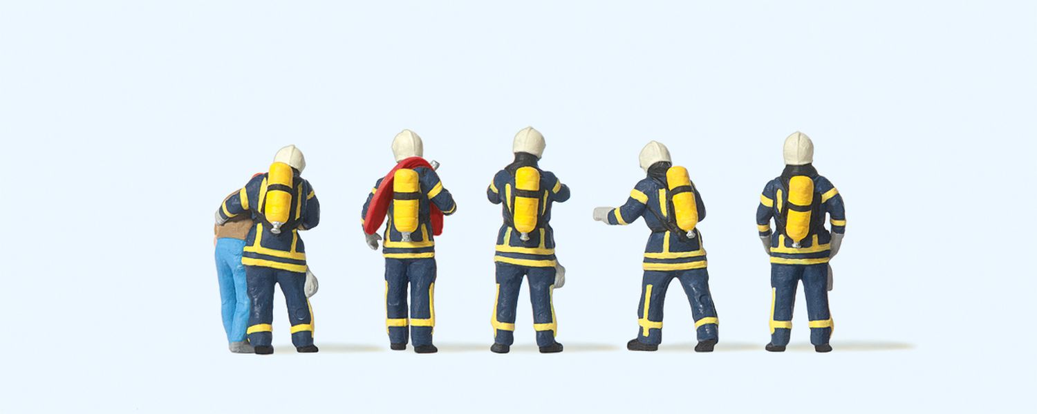 Produktinformationen "Preiser 10765 - Feuerwehrleute in moderner Einsatzkleidung, blau"