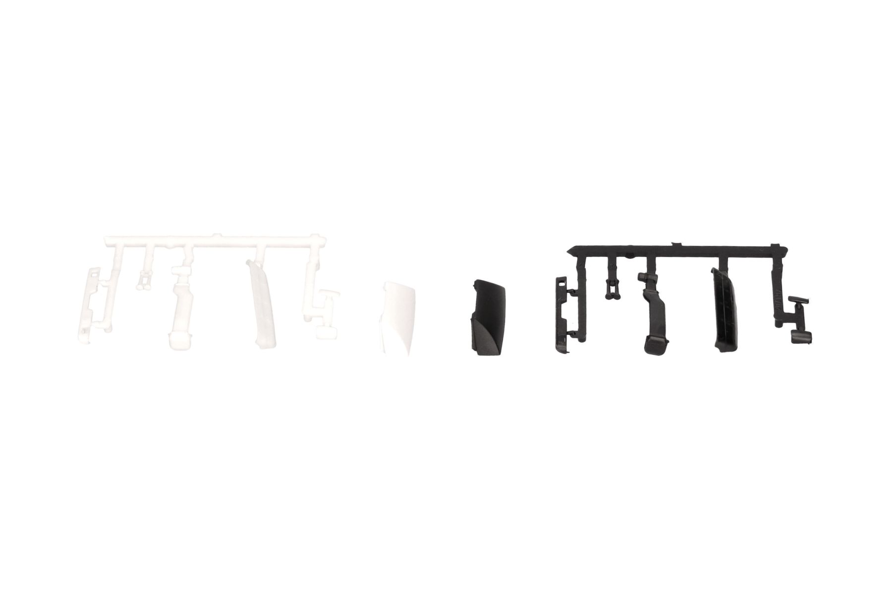Bei modernen Zugmaschinen sind diese Anbauteile wie Sidebar und Lowbar oftmals in der Farbe der Karosserie zu finden. Herpa stellt diese nun auch in neutraler Farbgebung zum Umlackieren über dieses Zubehörset zur Verfügung.