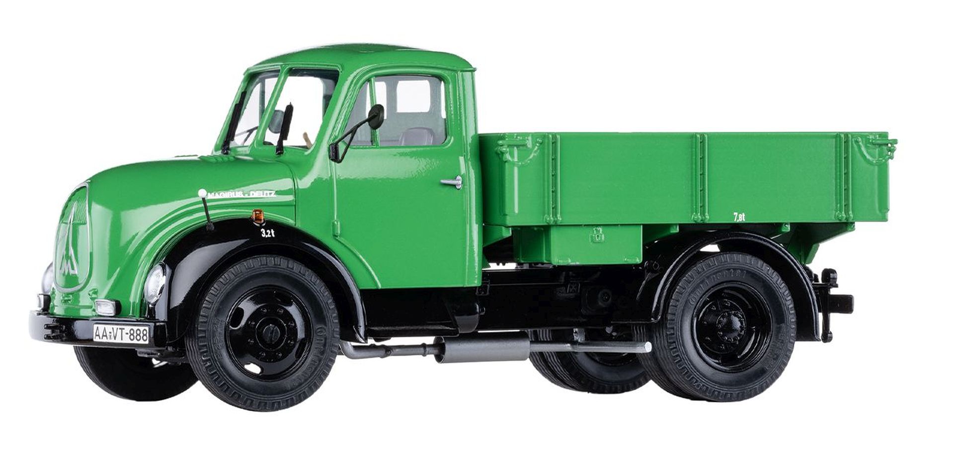 Vorbild: Magirus Mercur 120 S sog. „Rundhauber“ mit offener Pritsche. Modell: Lieferfahrzeug Magirus Mercur 120 S mit Ladepritsche für Spur 1. Das Modell ist fein detailliert, z.B. mit angesetzten Peilstäben auf den Kotflügeln und Spiegeln ausgerüstet und wird aus Kunststoff mit Echtgummibereifung hergestellt.