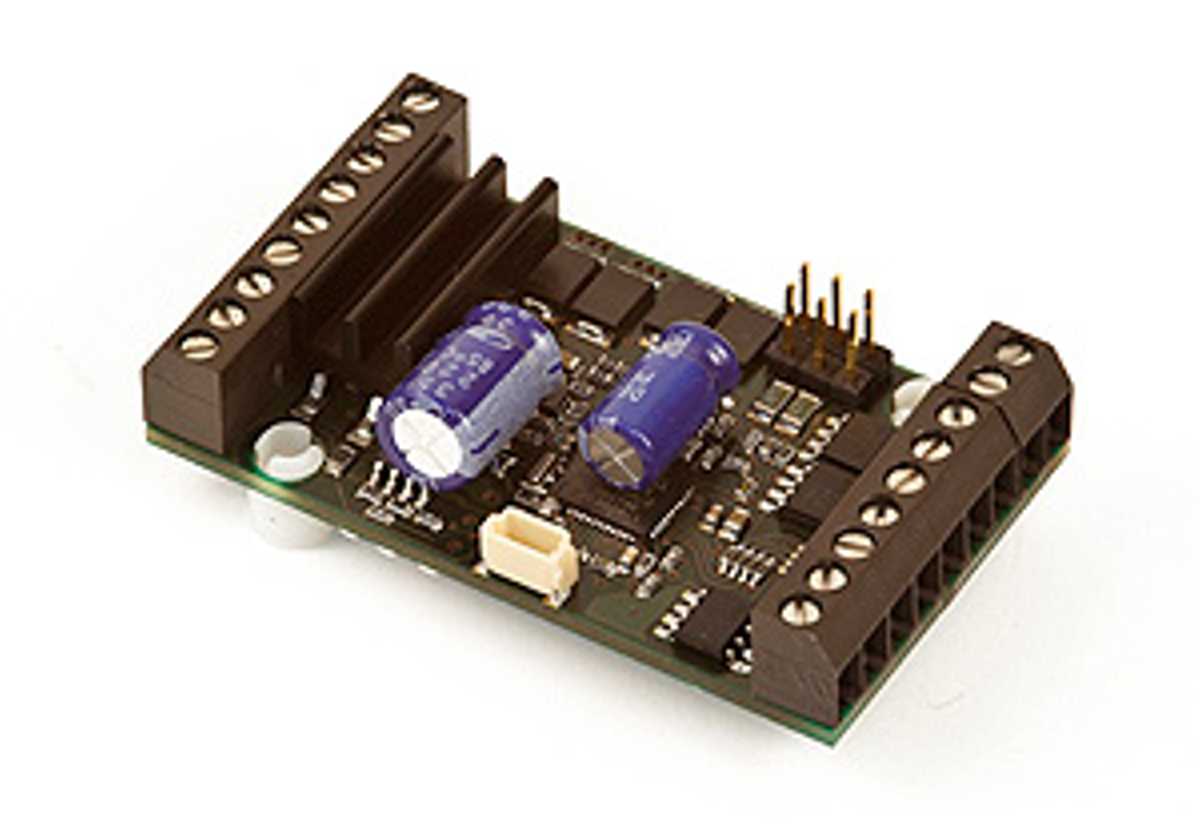 Leistungsfähiger 3 Ampere Fahrdecoder mit vier Ampere Gesamtbelastbarkeit und 8 Funktions-ausgängen, geeignet für Loks mit bis zu zwei Motoren.