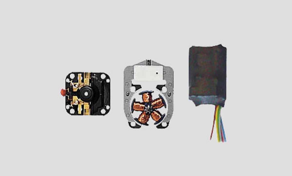 Geregelter Digital-Decoder in kompakter Bauform. 5-poliger Märklin Hochleistungsmotor zum Austausch. Einfache Aufrüstung für sehr viele ältere Lokomotiven.