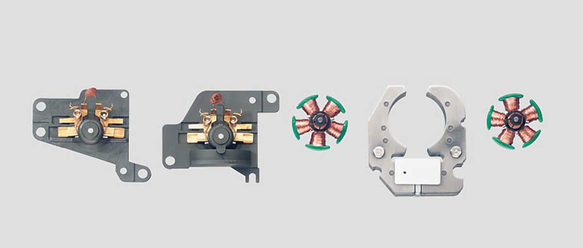 Zum Umrüsten von vielen Märklin-H0-Lokomotiven mit Scheibenkollektor-Motor großer Bauart auf den fünfpoligen Hochleistungsmotor. Bestehend aus Hochleistungsmotor in verschiedenen Bauformen und Einbaumaterial.