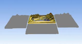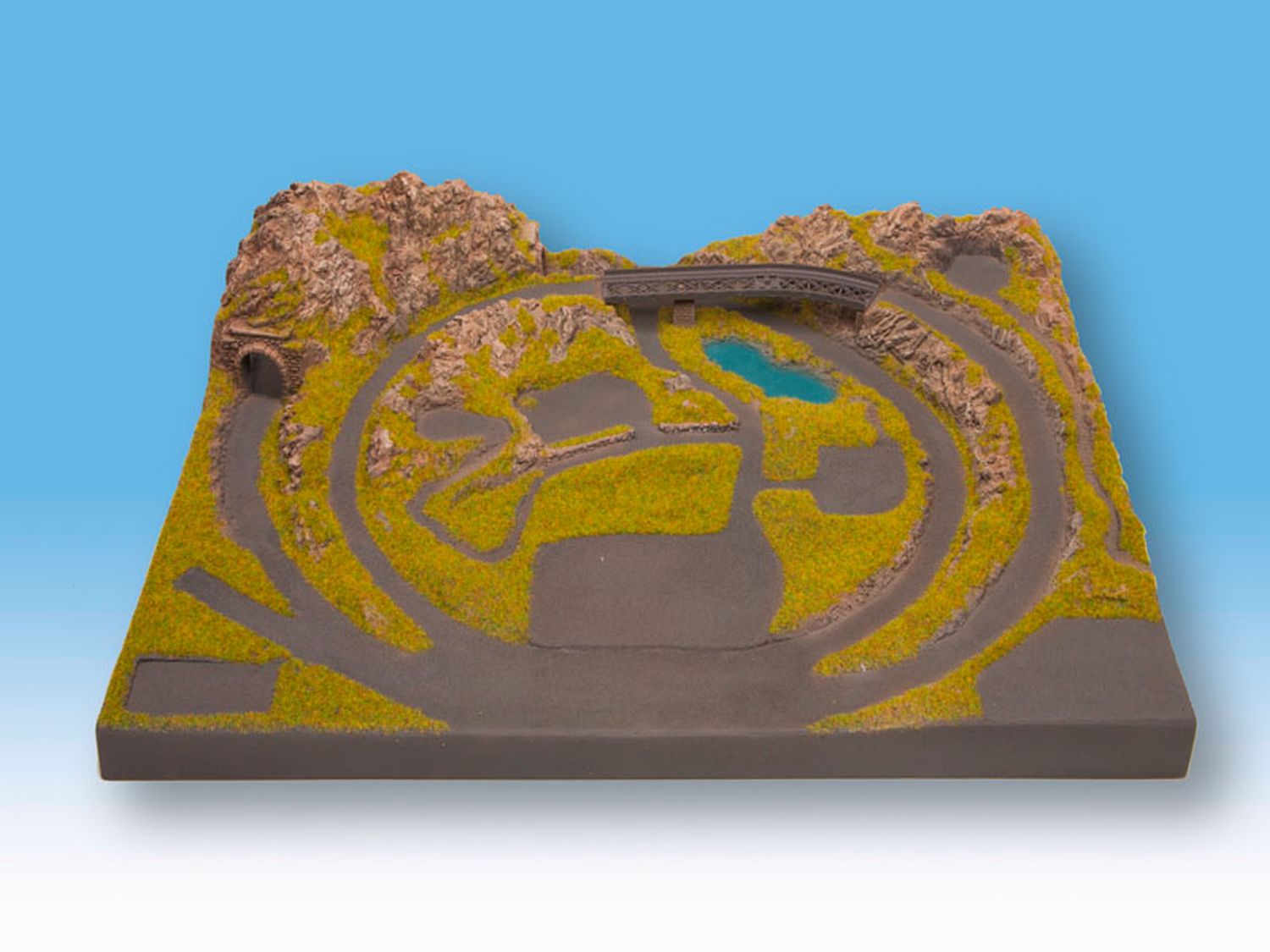 Das Fertiggelände wird ohne Fahrregler, Koffer, Gleise, Loks, Waggons und Ausschmückung geliefert.