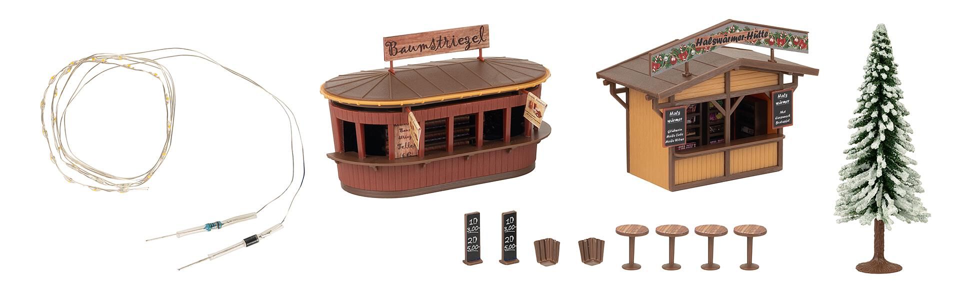 Faller 134006 - 2 Weihnachtsmarktbuden mit beleuchtetem Weihnachtsbaum