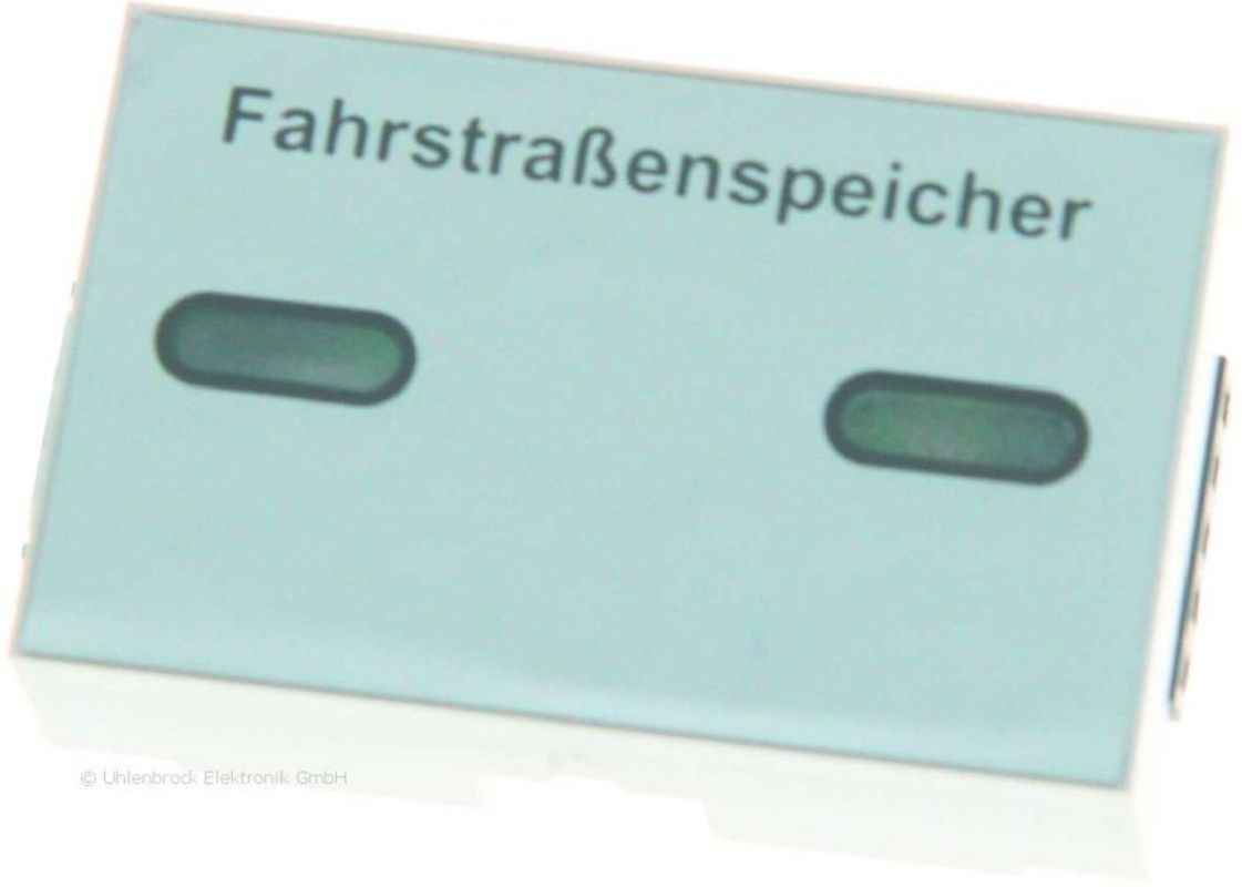 Segment zum Einfügen in das Gleisbildstellpult. Speichert über 2000 Schaltbefehle für Fahrstraßen, die über das Gleisbildstellpult aufgerufen werden können. Aufruf von Fahrstraßen über Start-Zieltasten