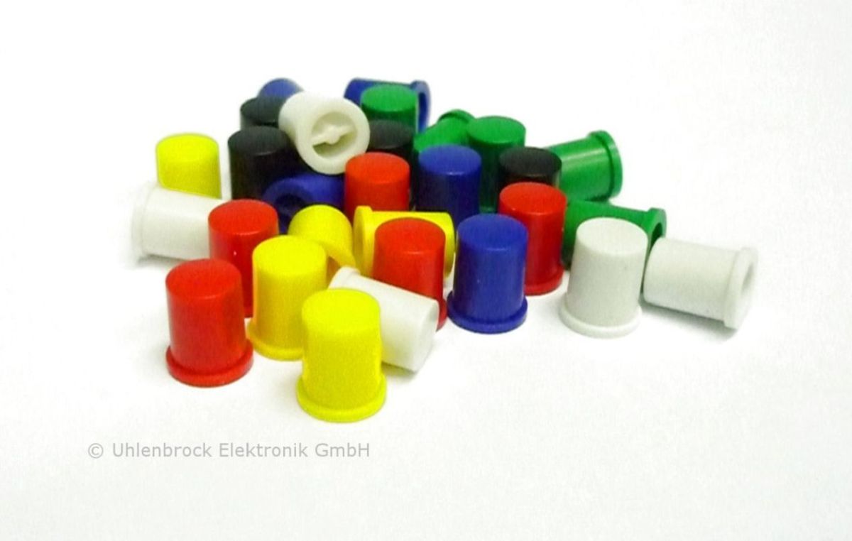 Je 5 Tastenkappen in den Farben blau, gelb, grün, rot, schwarz und weiß