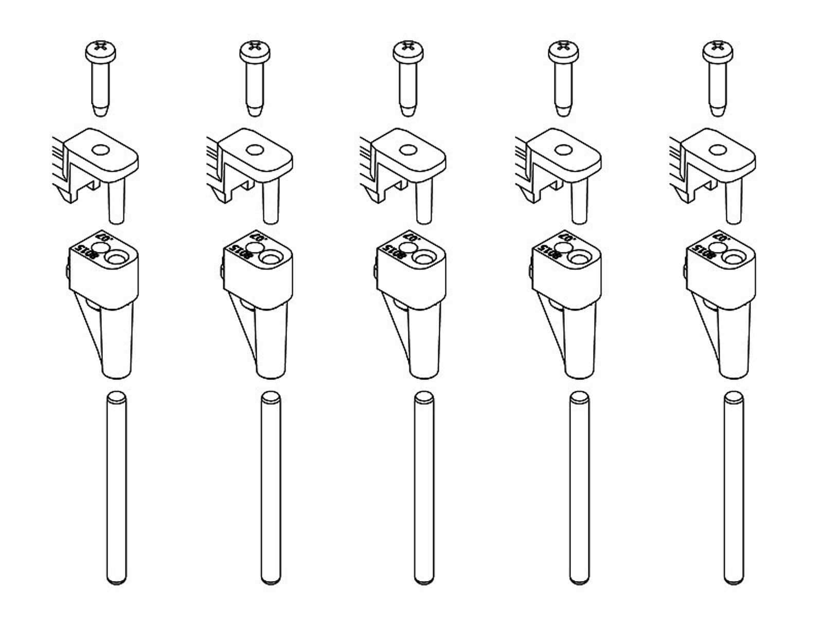 Mit der Unterflurerweiterung EVO kann der Weichenantrieb EVO-S zum Unterflurantrieb erweitert werden. Neben dem Unterfluradapter befinden sich im Lieferumfang auch die passenden Schrauben zur Montage des Antriebs unter einer Holzplatte. Das Set enthält insgesamt fünf (5) Einheiten. Details zur Montage finden Sie in der Bedienungsanleitung des 8444000 Weichenantrieb EVO-S.