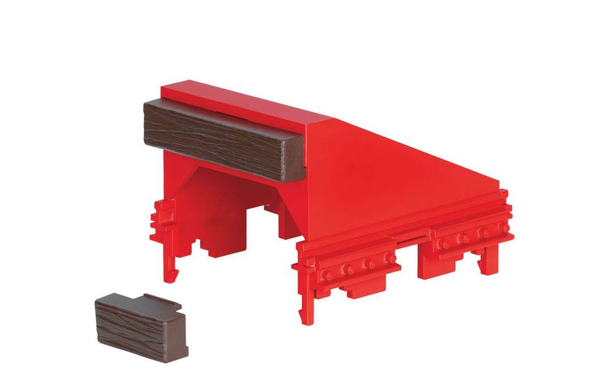 Modell eines modernen Prellbocks der Rhätischen Bahn in der aktuellen roten Lackierung der Epoche VI.