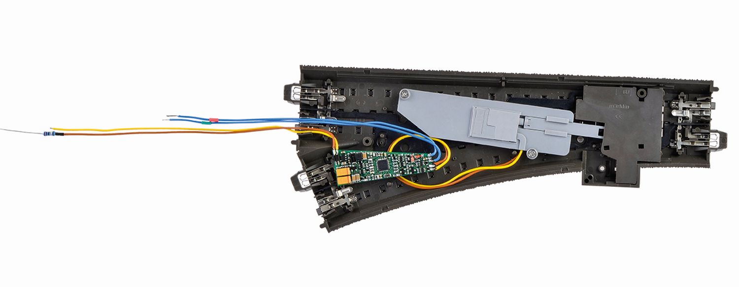 Bei Weichen kann der Elektroantrieb nachträglich ganz einfach ohne Spezialwerkzeug eingebaut und angeschlossen werden. Der Antrieb sitzt verdeckt im Schotterbett, Unterflurmontage ist nicht erforderlich.…