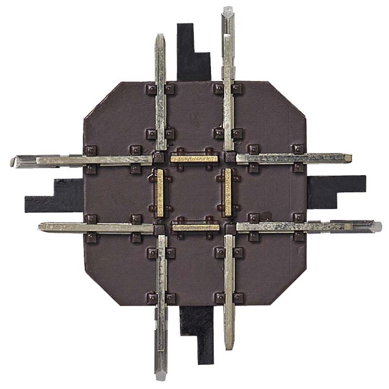 1 Gleiskreuzung. Länge 33,3 mm, 90°. Das H0f Feldbahngleissystem: Das maßstäbliche Feldbahngleissystem in der Spurweite 6,5 mm (entspricht ca. 600 mm im Original) ist eine komplette Neuentwicklung. Die Gleise haben den bei Feldbahnen üblichen großen Abstand der Schienenschwellen. Das besondere an diesen Gleisen sind integrierte Metallstreifen, die für den erforderlichen, magnetisch erhöhten An…
