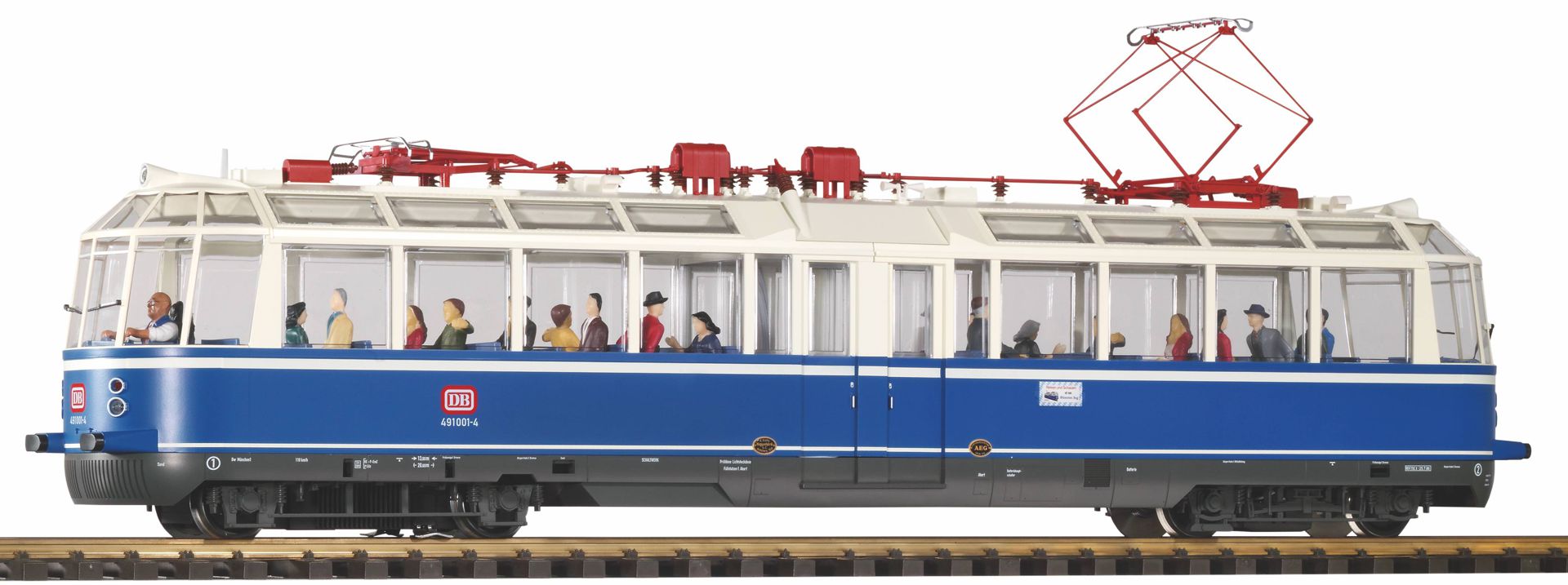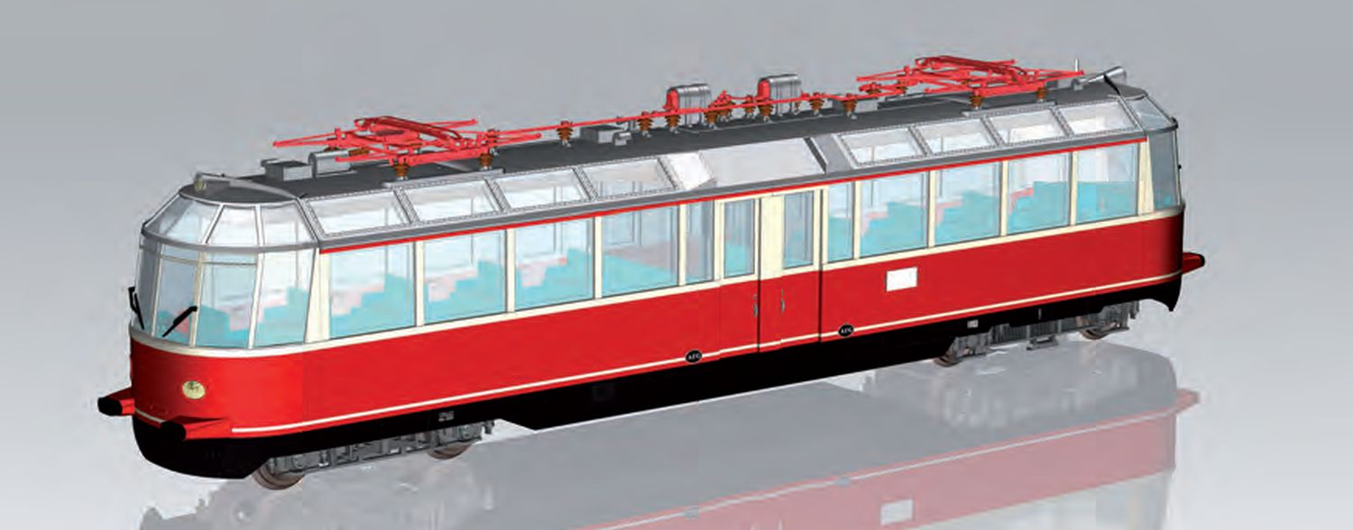 Der gläserne Wagenkasten erlaubt Einblicke ins Innere, samt bereits werkseitig eingesetzter Figuren. Eine ab Werk installierte Innenbeleuchtung ist ebenfalls verbaut. Ebenfalls beleuchtet ist das Führerpult. Der Lichtwechsel erfolgt mit der Fahrtrichtung wechselnd rot/weiß. Für den Betrieb in Österreich, wurde am Original 1976 ein SBS 65 Einholm-Stromabnehmer angebracht. Auch diese Besonderhei…