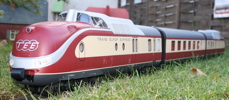 Formneuheit, 3-tlg.Triebwagen der DB in der Ep.III Ausführung, zwei angetriebene Triebköpfe und ein Abteilwagen bilden die Grundeinheit die mit den Ergänzungen #37640 Abteilwagen (andere Betriebsnummer) und #37641 Speisewagen erweitert werden kann, stromführende Spezialkupplungen, Lichtwechsel weiß/rot, der Zug kann mit Digital- und Sounddecoder und Innenbeleuchtung nachgerüstet werden, der Trieb…
