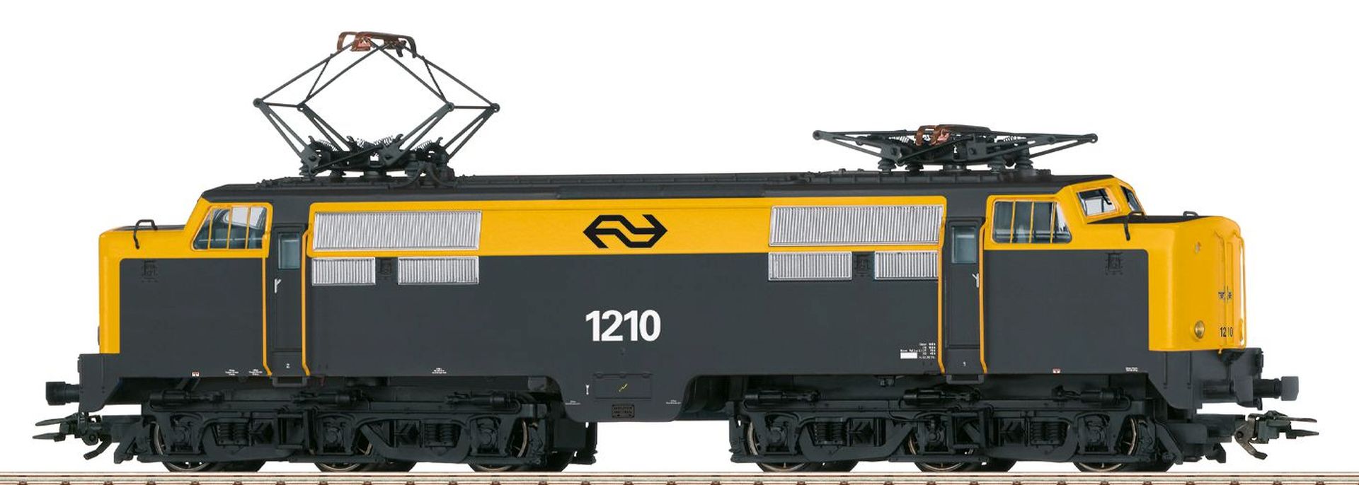 Vorbild: Elektrolokomotive Reihe 1200 der Niederländischen Eisenbahnen (NS). Grau/Gelbe Grundfarbgebung. Betriebsnummer 1210. Betriebszustand ab 1972.