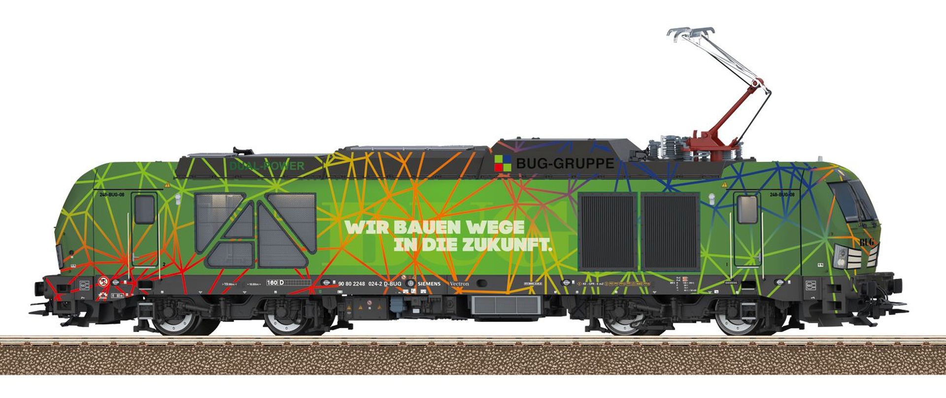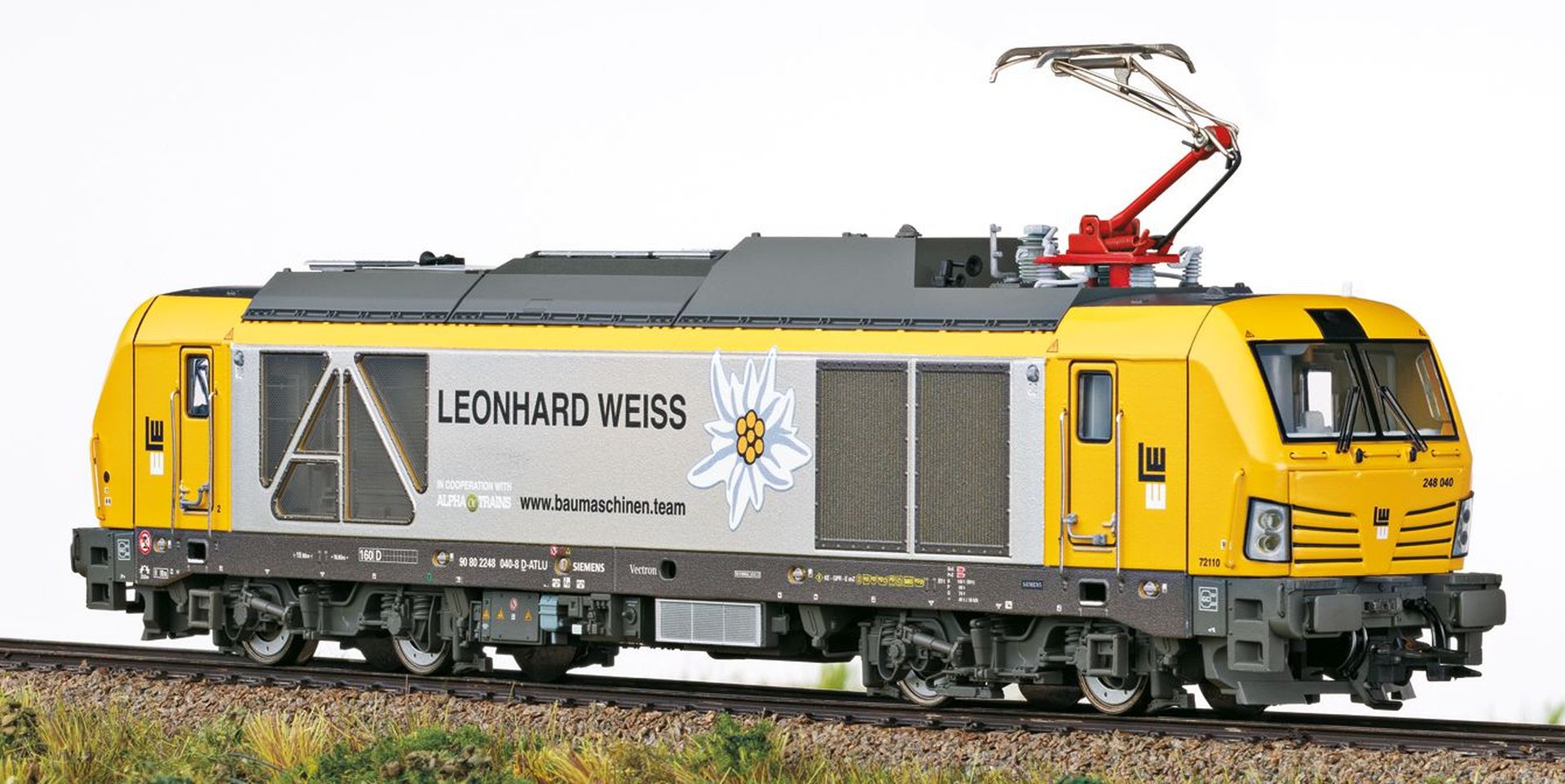 Vorbild: Zweikraftlokomotive BR 248 (Vectron Dual Mode) der Railssytems RP GmbH. Aus der Vectron-Produktfamilie von Siemens. Betriebsnummer 248 002. Betriebszustand 2021.