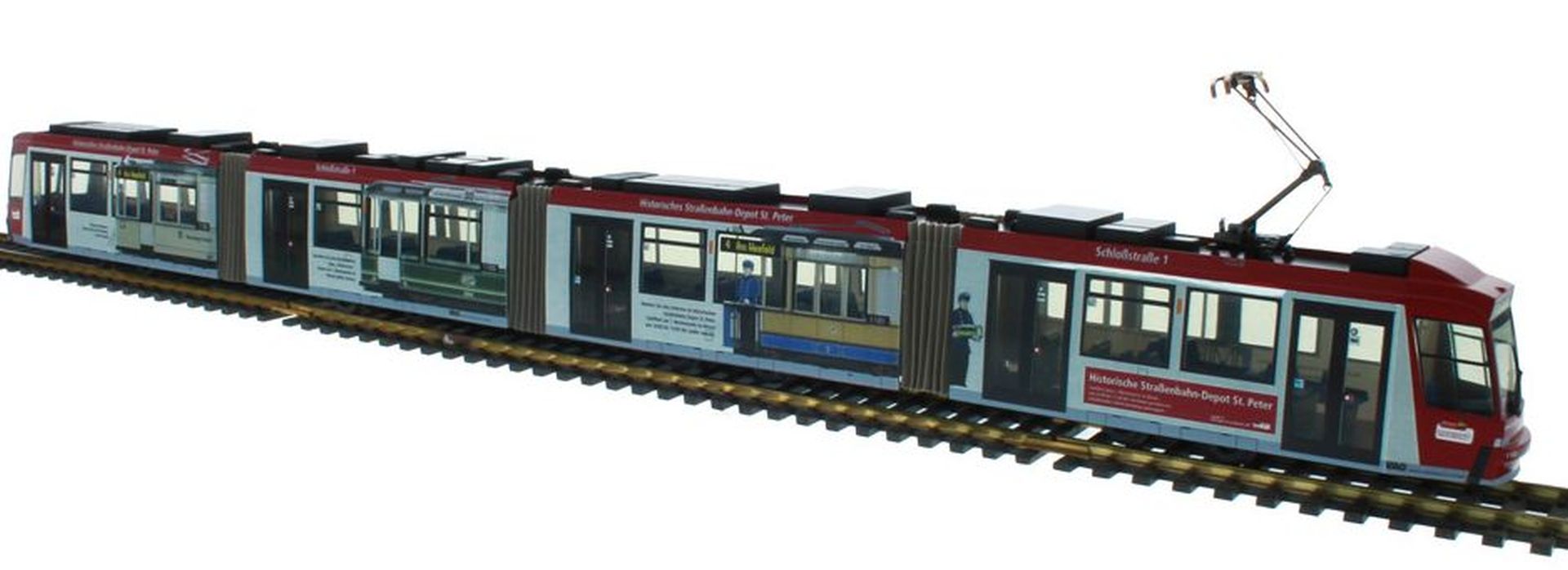 Rietze STRA01030 - Straßenbahn Adtranz GT8 30 J. Historisches Straßenbahn Depot St. Peter, Ep.VI, ohne Antrieb