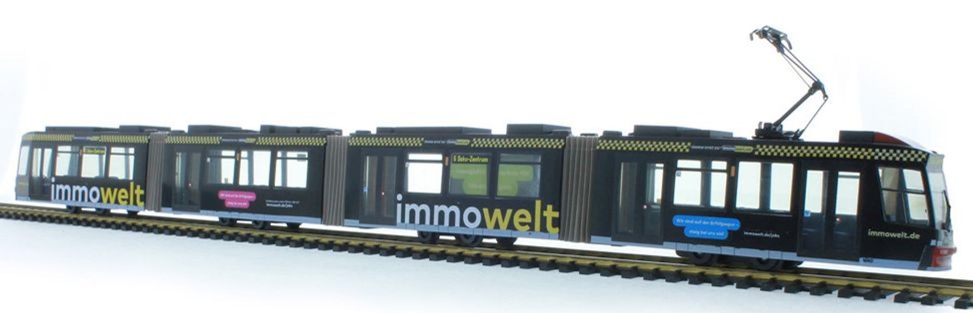 Rietze STRA01033 - Straßenbahn Adtranz GT 8 VAG - immowelt, Ep.VI, ohne Antrieb