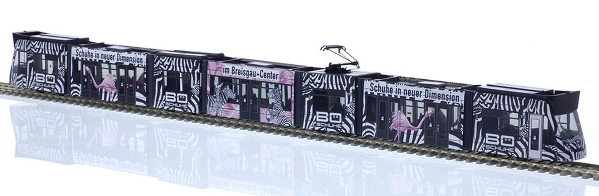 Rietze STRA01109 - Straßenbahn Siemens Combino, VAG Freiburg - BÖ Schuhe, Schwitzke ID, Ep.VI, ohne Antrieb