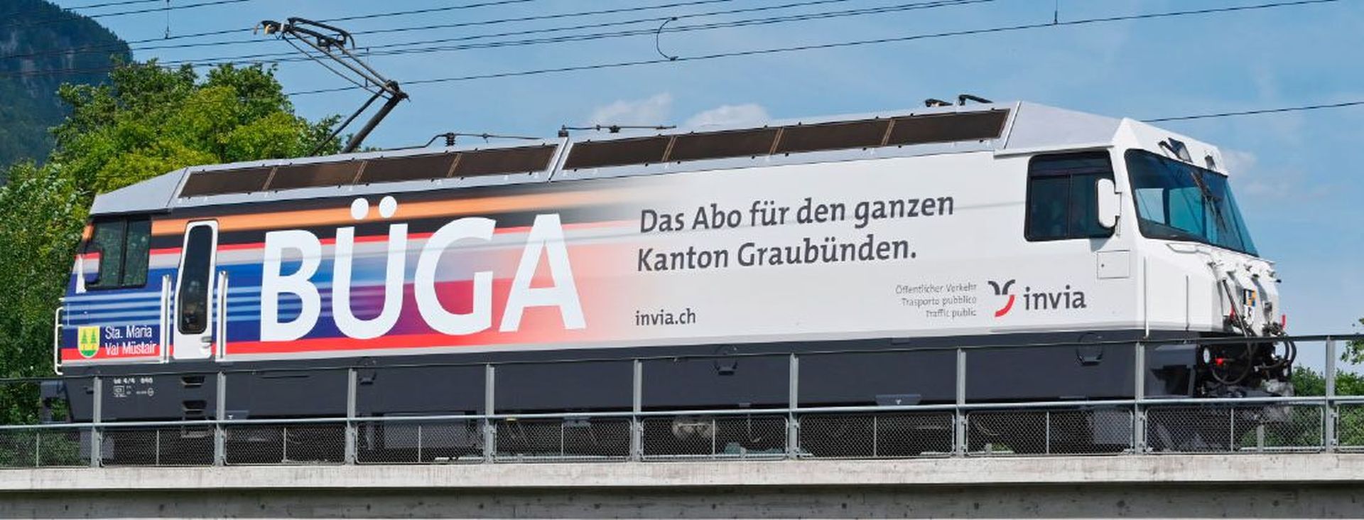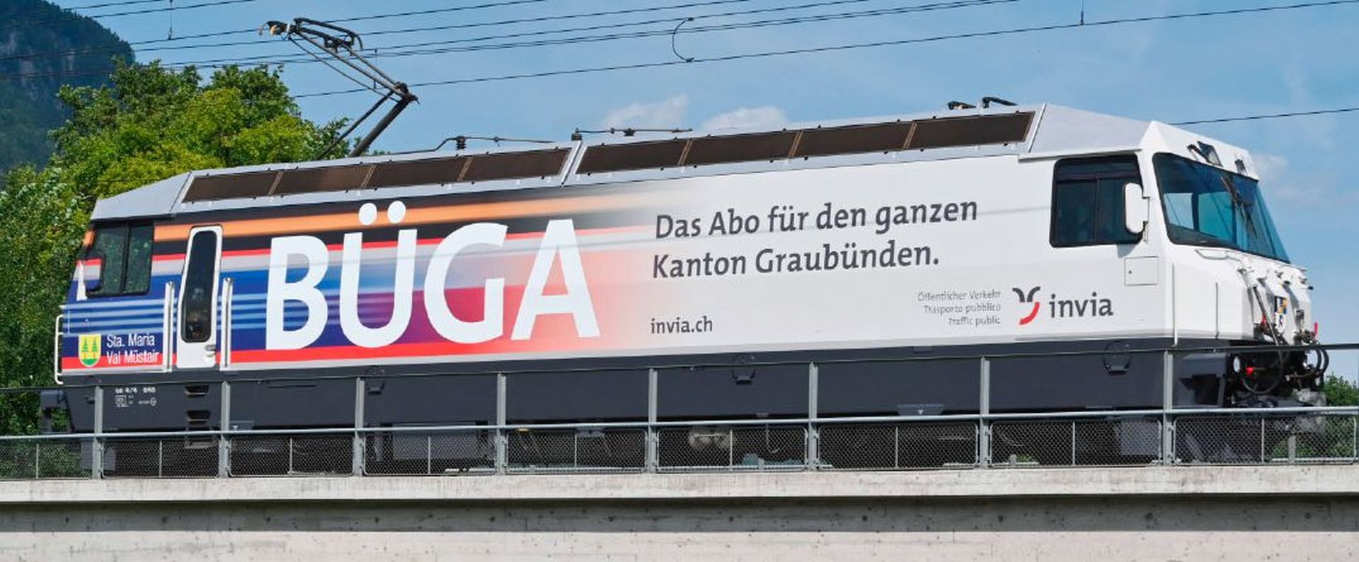 Mitte Juli erneuerte die RhB die Beklebung der für das Bündner Generalabonnement werbenden Ge 4/4 646. Auf weißer Lokkastenfarbe ist nun beidseitig nur noch die linke Hälfte der Seitenwand mit dem bekannten Sujet bedeckt.