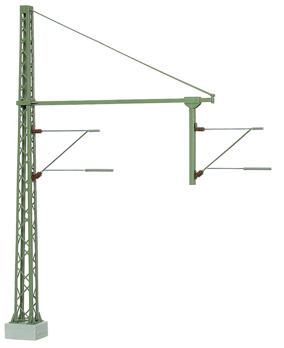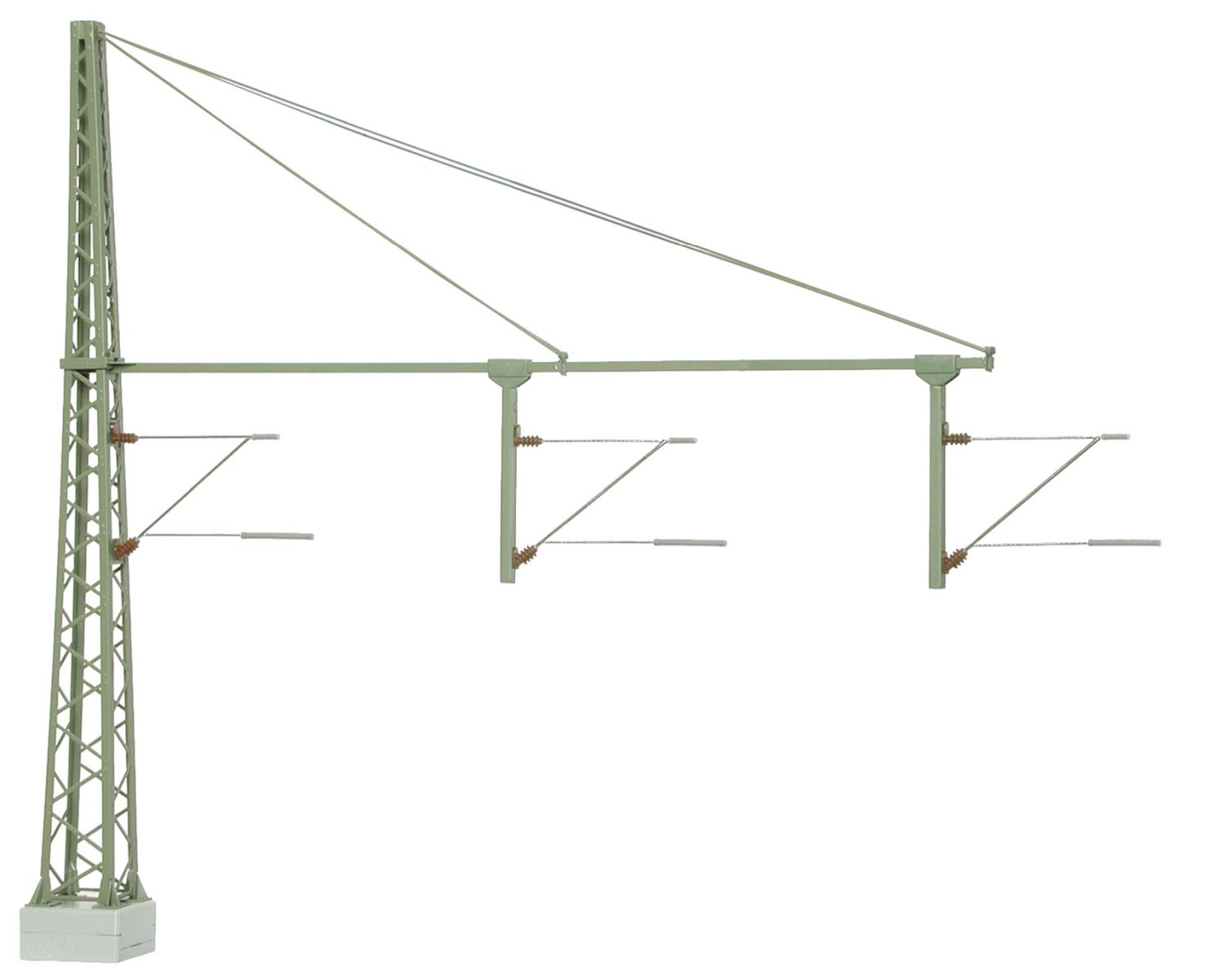Metallausführung, fertig montiert und lackiert, Masthöhe: 82mm, maximaler Mastabstand: 117mm, die Gleisabstände sind beliebig wählbar