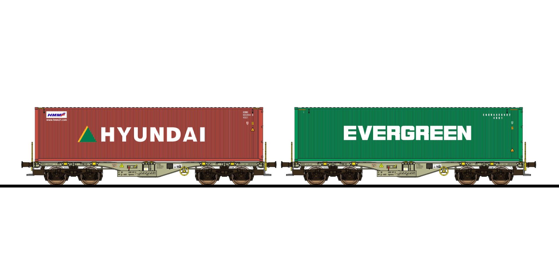 ESU 36609 - Containertragwagen Sgmmns, D-AAEC, Ep.VI 'HYUNDAI, EVERGREEN'
