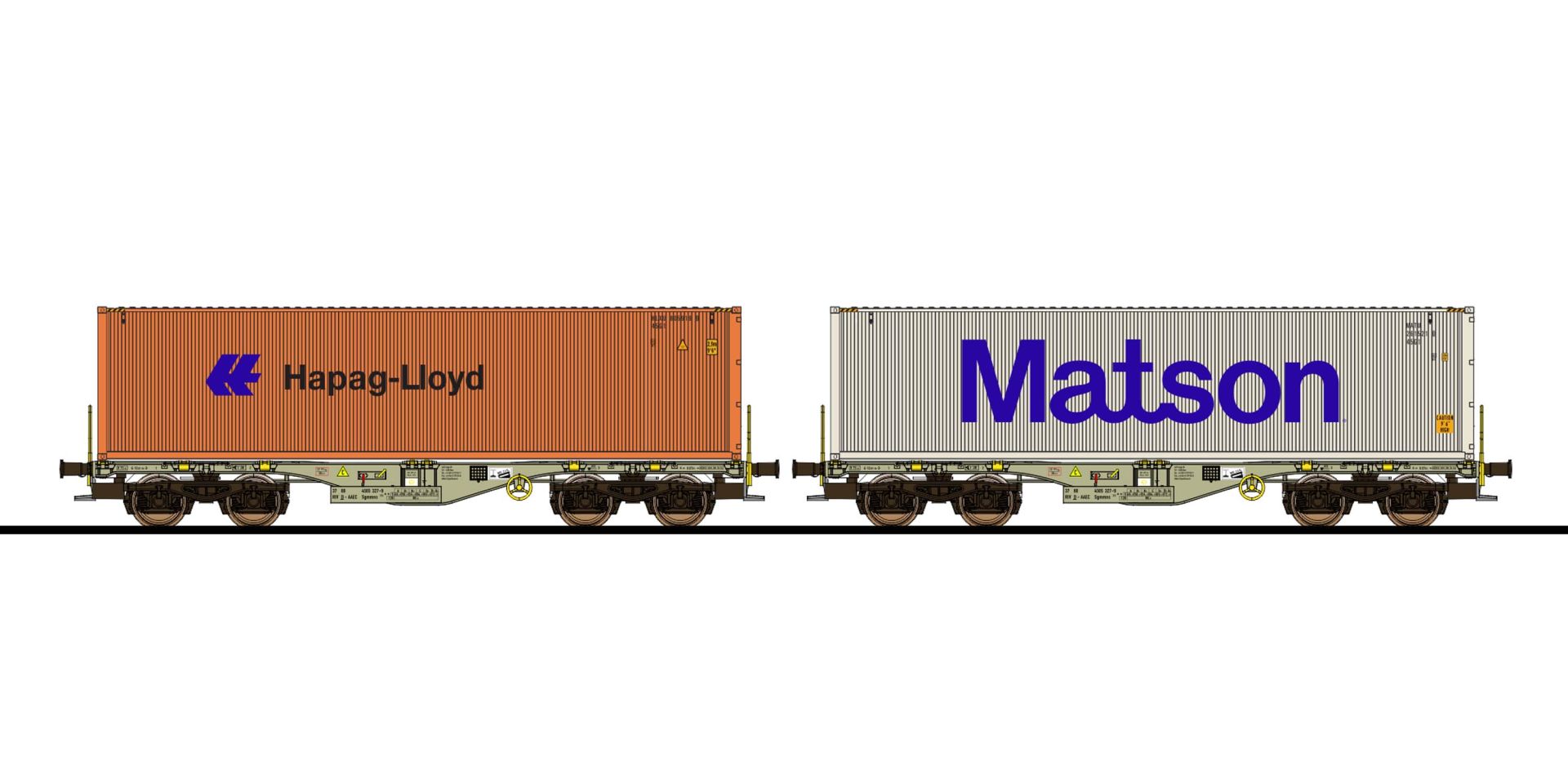 Containertragwagen, H0, Sgmmns, 37 80 4505 332-9 + 37 80 4505 354-3, D-AAEC Ep. VI, Container HLXU 805919 + MATU 261521, DC