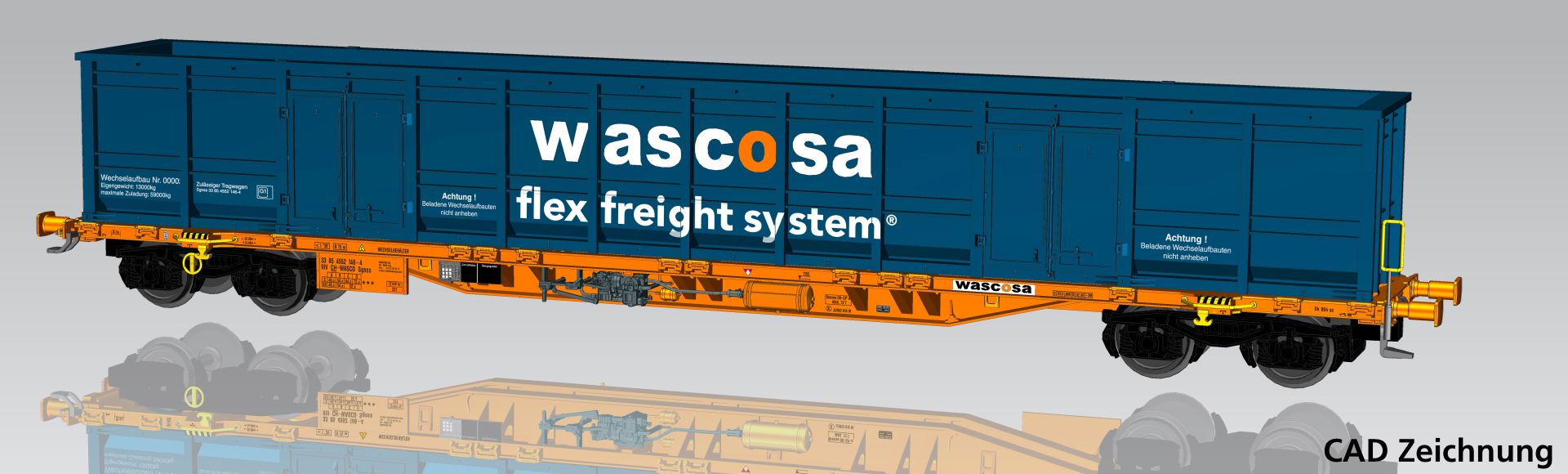 Piko 24566 - Containertragwagen Sgnns mit E-Aufbau, CH-Wascosa, Ep.VI