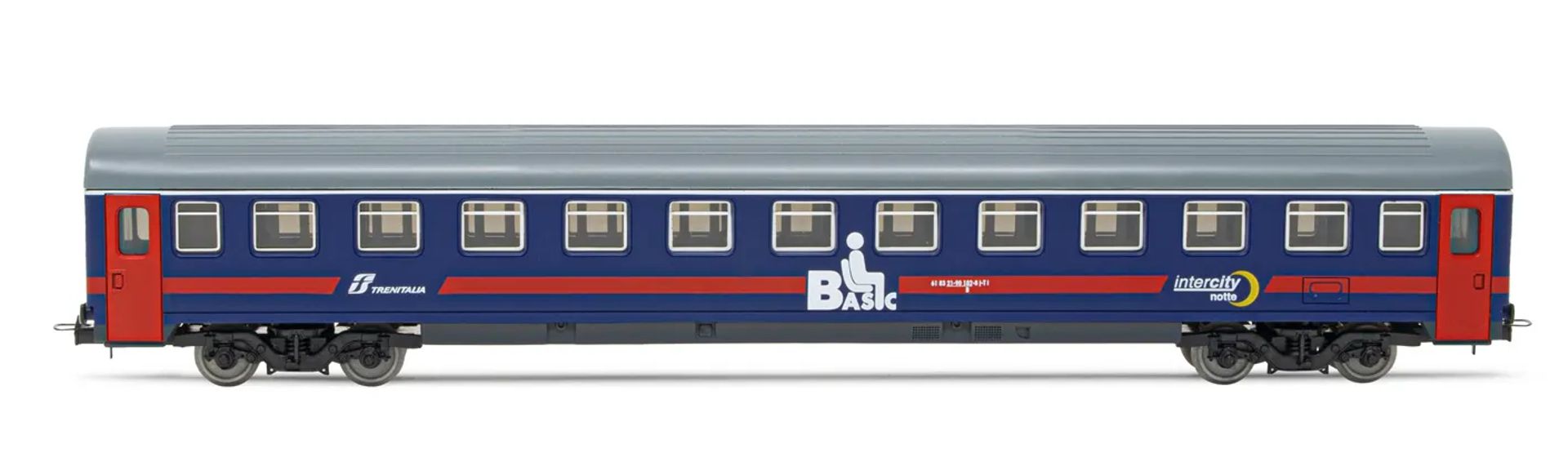 FS, 2. Klasse Wagen UIC-Z1 in blauer „Intercity Notte Basic"-Lackierung mit rotefarbigem Streifen, Ep. VI