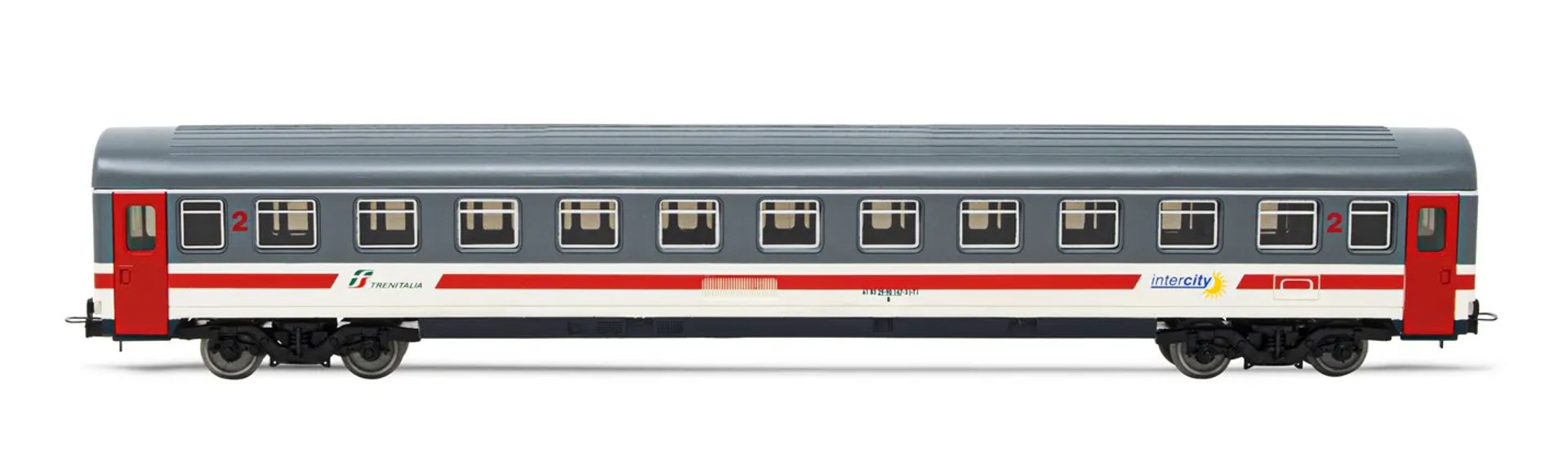FS, 2. Klasse Wagen UIC-Z1 in grau/weißer „Intercity Giorno"-Lackierung mit rotefarbigem Streifen, Ep. VI