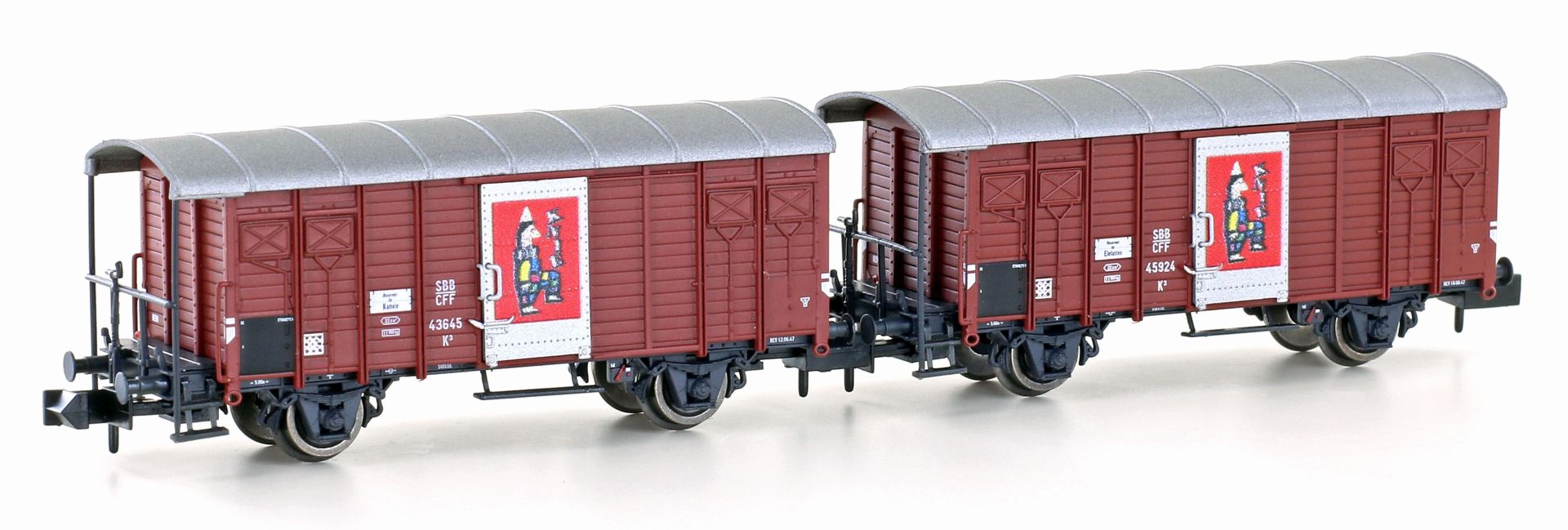 Hobbytrain H24257 - 2er Set gedeckte Güterwagen K3, SBB, Ep.III 'Zirkus Knie'