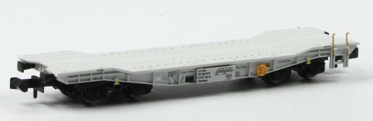 Druckvariante des Schwerlastwagens Slmmps der CH-LBA in der Epoche VI. Das PIKO N Modell entspricht in Form, Farbgebung und Bedruckung dem mehrfach variierten Vorbild. Das Modell überzeugt mit exzellenten Rolleigenschaften, fein gravierten Drehgestellen, Kurzkupplungskinematik, abnehmbaren und verstellbaren Keilen. Die Handgriffe lassen sich ein- und ausziehen. Wagen ohne Ladung.