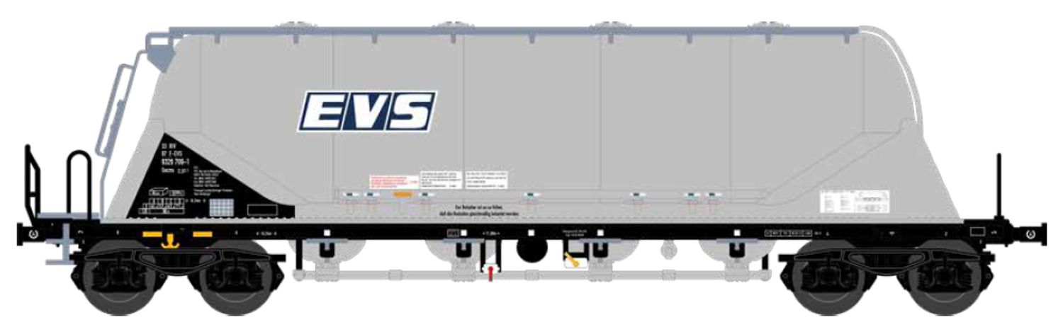 Betriebsnummer: 3387 9326 709-1 - Zementsilowagen Uacns "EVS", altes Logo, silber